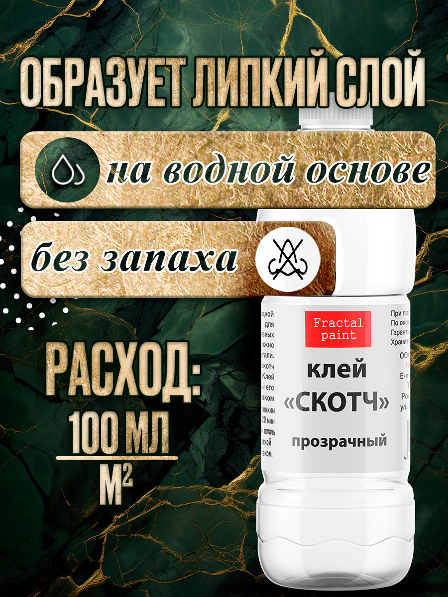 Клей для потали на водной основе - это надежный и удобный способ прикрепить поталь к вашему творческому проекту. Благодаря специальной формуле клея для потали, обеспечивается прочное и долговечное крепление потали любого размера и формы. Клей скотч жидкий легко наносится на поверхность, обеспечивая идеальное прилегание потали без образования пузырей или складок.