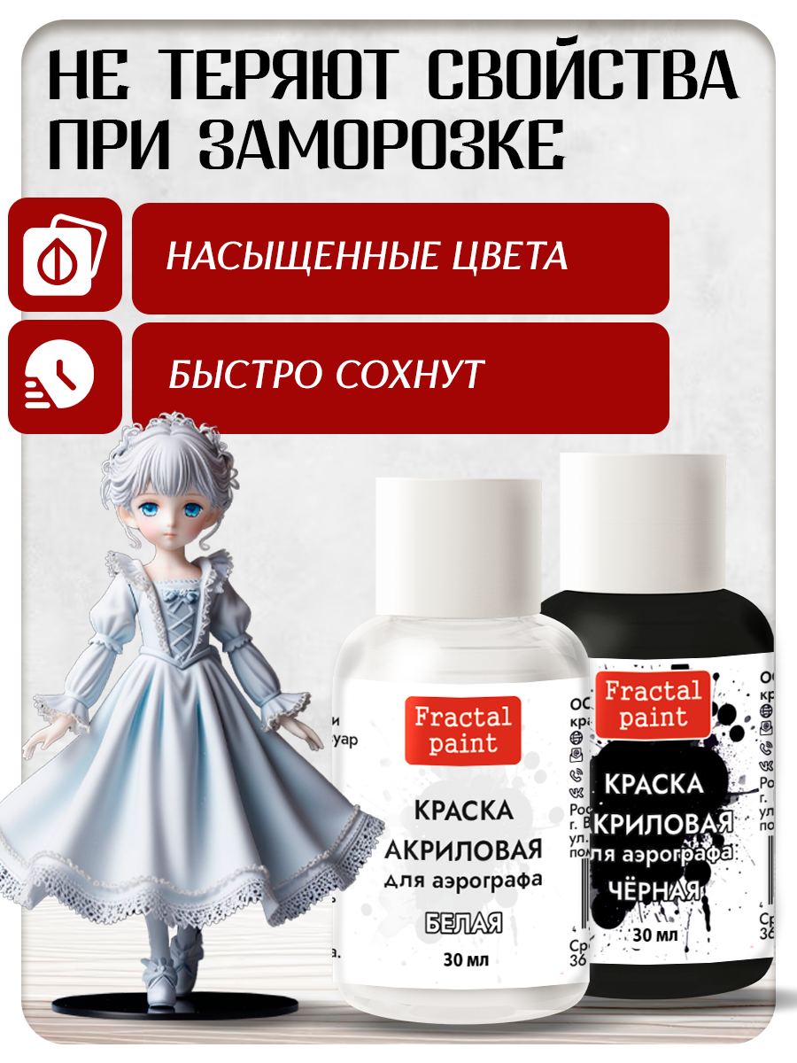 1. Краска для аэрографа акриловая «Белая», 30 мл;