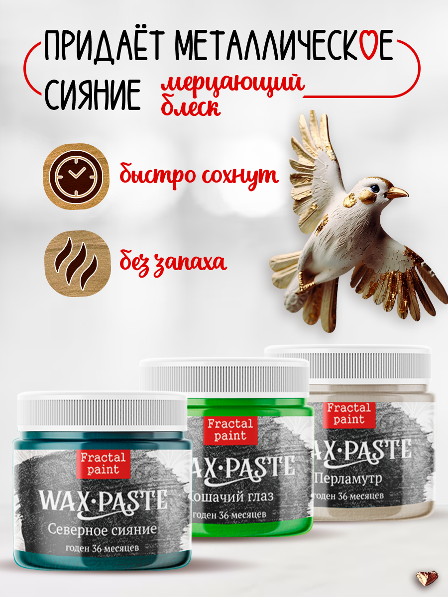 Патинирующая восковая паста густая, отличается высокой концентрацией пигмента, что позволяет достичь насыщенного цвета. Воск имеет мерцающий металлический оттенок, который придаст вашему изделию эффектный вид. Паста не имеет неприятного запаха, что делает его приятным в использовании. Кроме того, благодаря наличию акрила и пчелиного воска, восковая паста легко наносится и быстро сохнет. Он обеспечивает хорошую адгезию к поверхности и создает прочный слой, который будет долго сохранять свои свойства. Он подойдет как для профессиональных мастеров, так и для любителей рукоделия.
