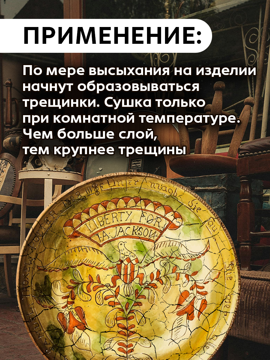 Этот комплект — лучший способ состарить поверхность, придав ей эффект потрескавшегося прозрачного лака, который выглядит как антикварная вещь, прожившая не одну сотню лет.