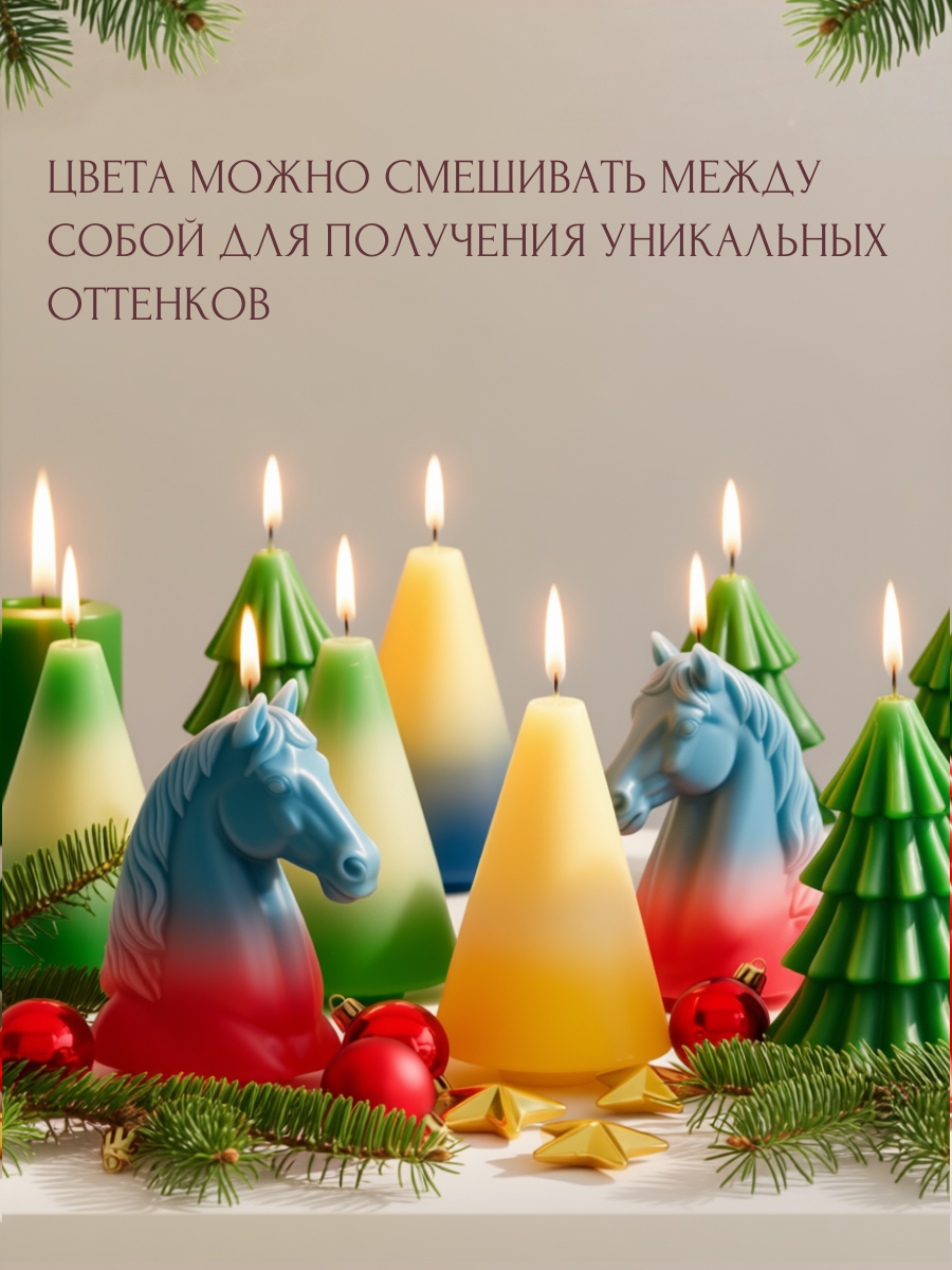 Создавайте свечи, от которых невозможно отвести взгляд! Наш высококонцентрированный краситель идеально растворяется в любом воске — соевом, пчелином, парафине — и дарит насыщенный, равномерный цвет.