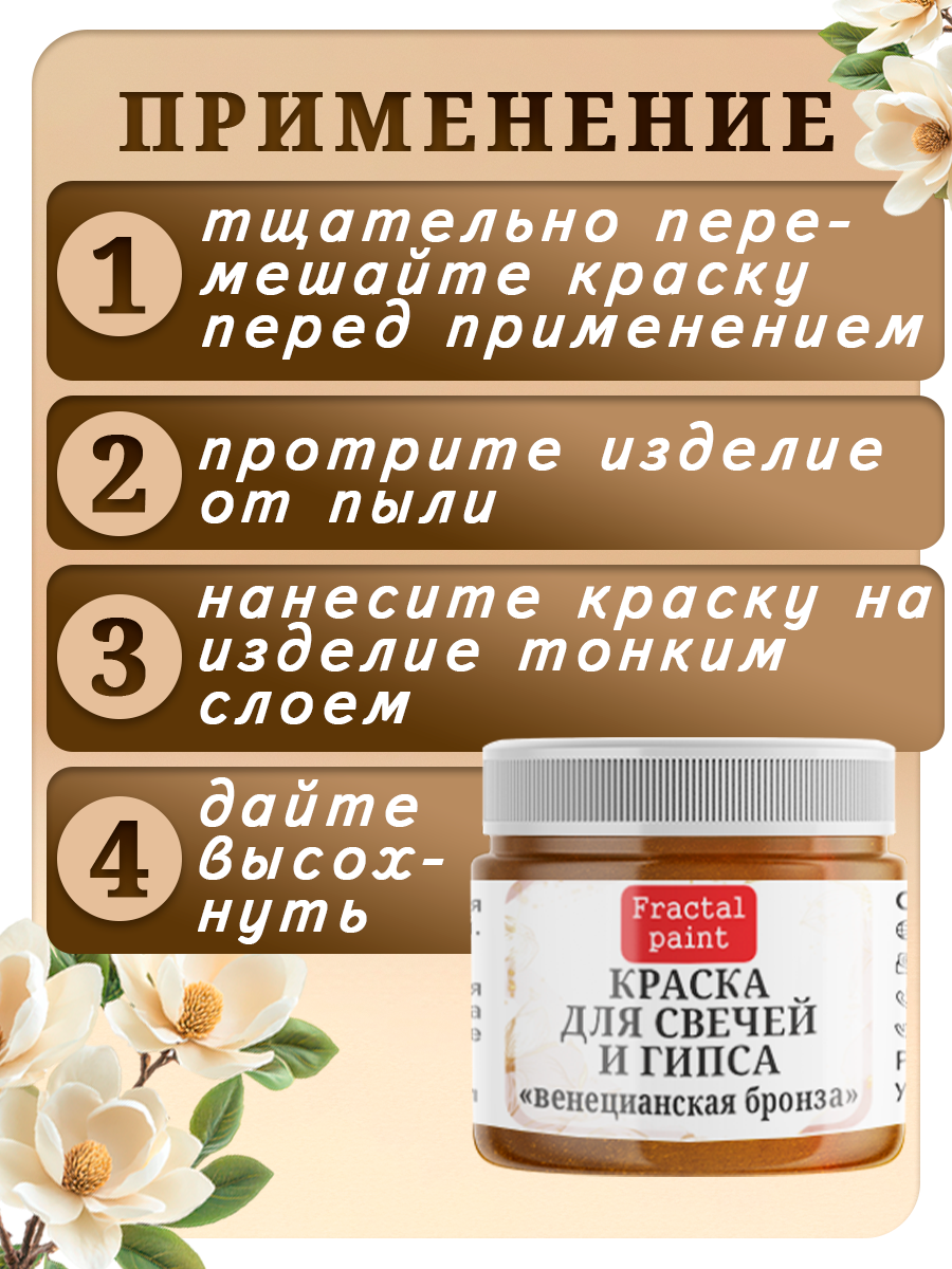 Приобретайте краску для свечей и гипса «Венецианская бронза» от Fractal Paint, и ваши творческие проекты станут настоящими произведениями искусства!