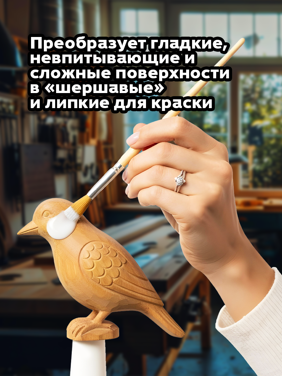 Специальный акриловый состав создает ровное, прозрачное и прочное сцепляющее покрытие. Готовьте к покраске и декорированию дерево, гипс, стекло, металл, пластик, керамику и даже камень. Улучшает адгезию, снижает расход краски.