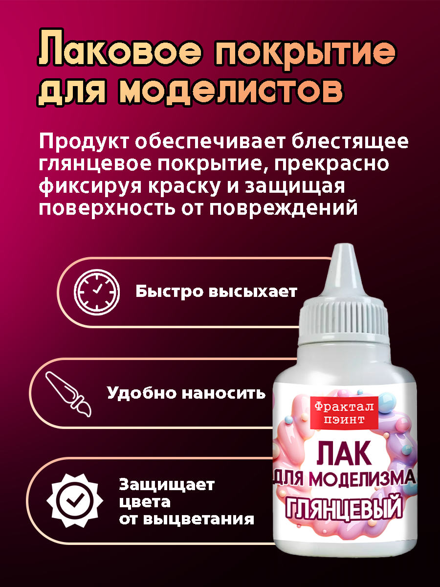 Глянцевый лак для моделизма — это профессиональный лак на водной основе, созданный для финишной защиты моделей, диорам и фигур. Лак формирует ровное и стойкое покрытие, которое после полной полимеризации защищает окраску от истирания, влаги и механических повреждений. Лак не желтеет со временем, не искажает цвета и обеспечивает единую фактуру.