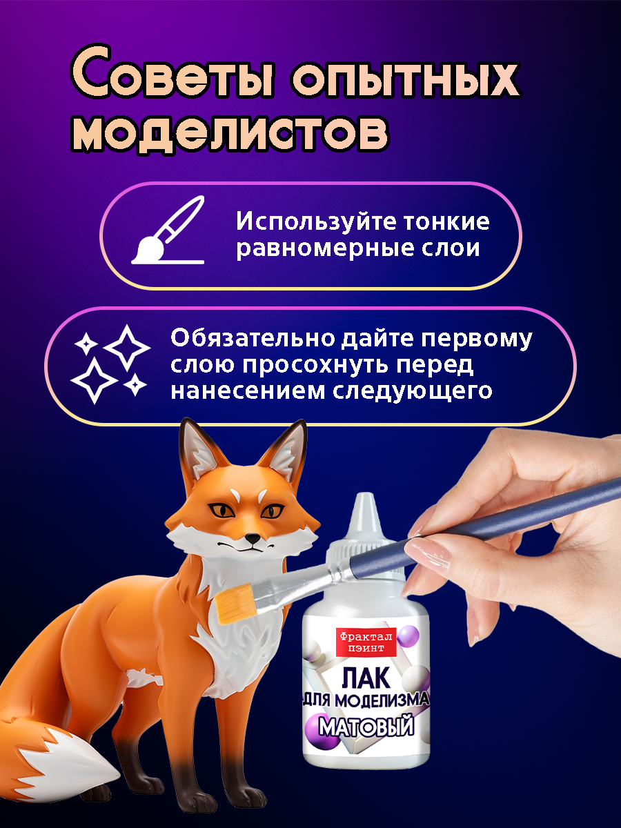 Матовый лак для моделизма — это профессиональный лак на водной основе, созданный для финишной защиты моделей, диорам и фигур. Лак формирует ровное и стойкое покрытие, которое после полной полимеризации защищает окраску от истирания, влаги и механических повреждений. Лак не желтеет со временем, не искажает цвета и обеспечивает единую фактуру.