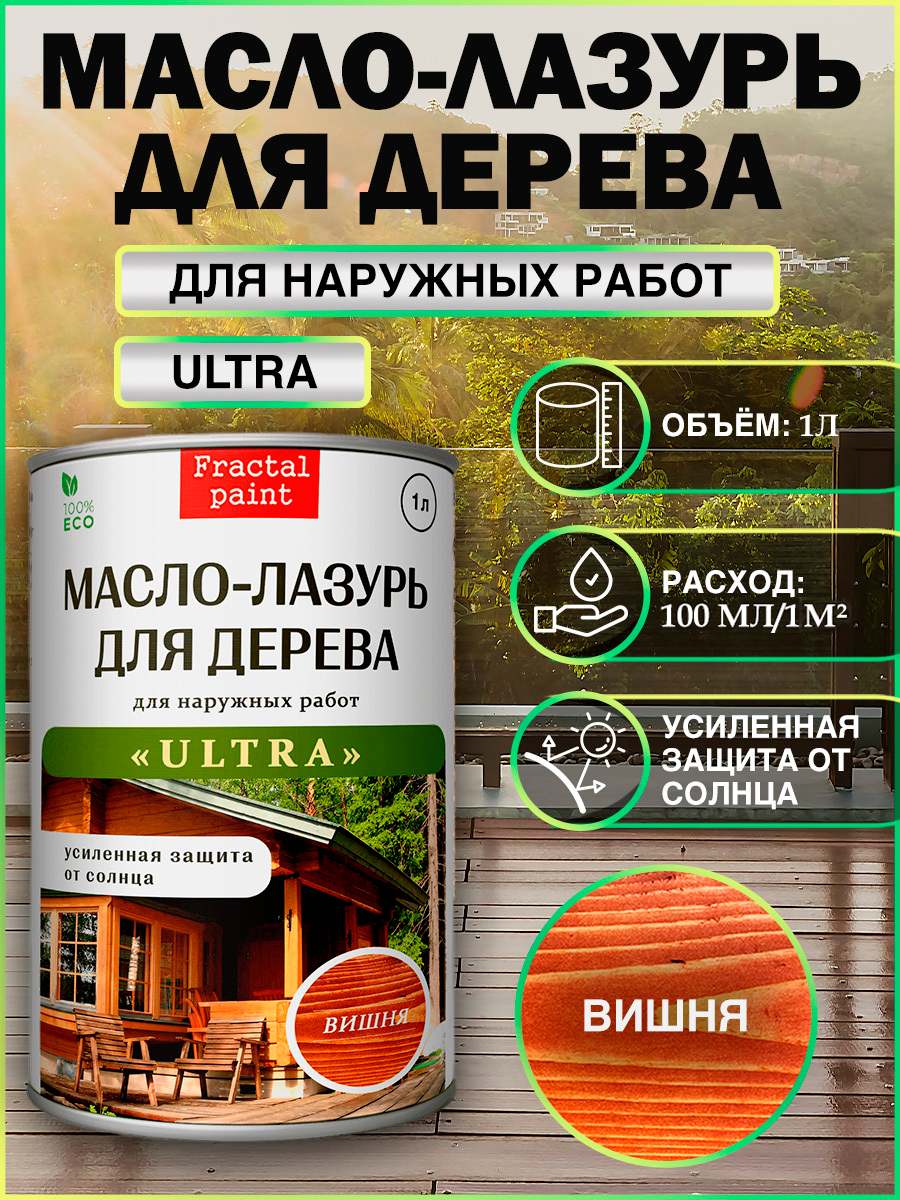 Пропитка для дерева «Масло-лазурь «УЛЬТРА» предназначена для наружных работ. Разработана для быстрой и эффективной защиты древесины от грибка, воды и ультрафиолета. Содержит натуральное льняное масло, воск, противогрибковые добавки, а также пигменты и специальные вещества для защиты от ультрафиолета. Масло подчеркивает красоту натурального дерева, проявляет текстуру и усиливает рисунок древесины. Воск защищает деревянные поверхности от атмосферных воздействий (дождь, снег). Пигменты и агенты  защищают от УФ-излучения. Специальные невымываемые водой антисептики защищают древесину от гнили. Состав подходит для обработки любых пород дерева.