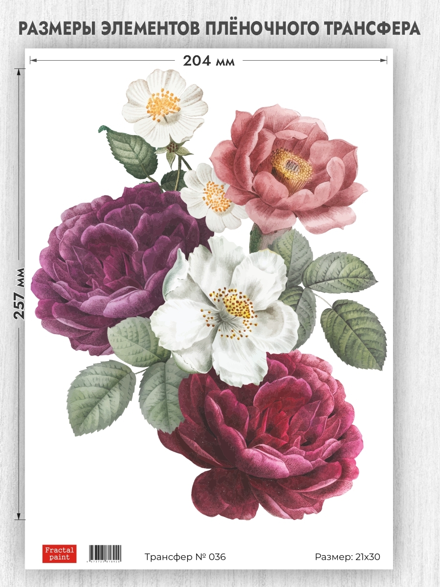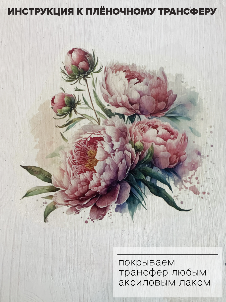 Плёночный трансфер представляет собой прозрачную пленку на бумажной основе с напечатанным изображением. Трансфер – переводная картинка, изображение, с его помощью Ваше изделие приобретет неповторимость и уникальность. Трансферной бумагой можно заменить декупажные карты, рисовую бумагу для декупажа, рисовые листы, бумагу для декупажа, салфетки для декупажа. Трансфер универсален, подходит для работы на светлых поверхностях (белая, слоновая кость, бежевая, кремовая). Рекомендуется предварительно загрунтовать поверхность. Для этого подойдет белая акриловая краска, светлый акриловый грунт, любой адгезионный грунт. Трансфер выпускается в 2 размерах: А4 и А3, изображения пропорциональны размеру печати. Тематика самая разнообразная. Вы можете подобрать картинку к празднику (Новый год, Пасха), тематическую (для детей, цветы, грибы, винтаж), по назначению (изображения для декора плитки, картинки для сырных досок, переводной рисунок для фона). Цветовая палитра рисунков от ярких сочных цветов до нежных пастельных. Там, где требуется, можно выбрать черно-белые трансферы.