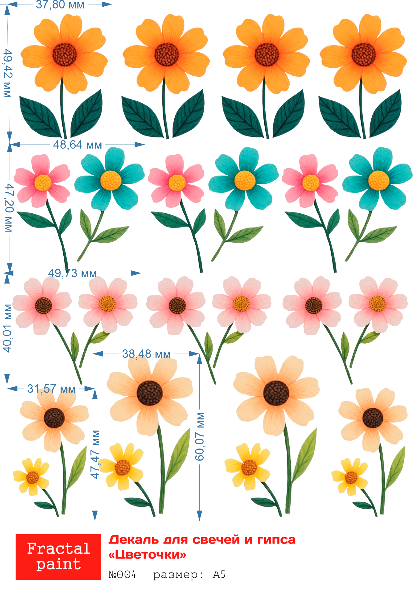 Трансфер переводной - декаль для свечей и гипса цветочки 004 А5