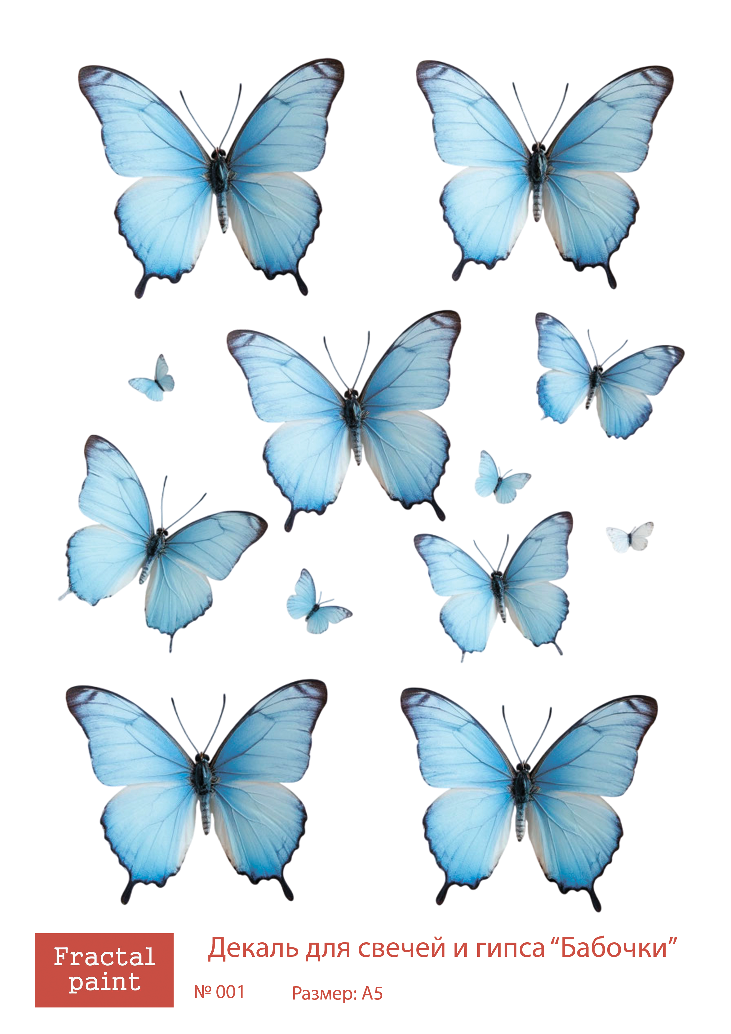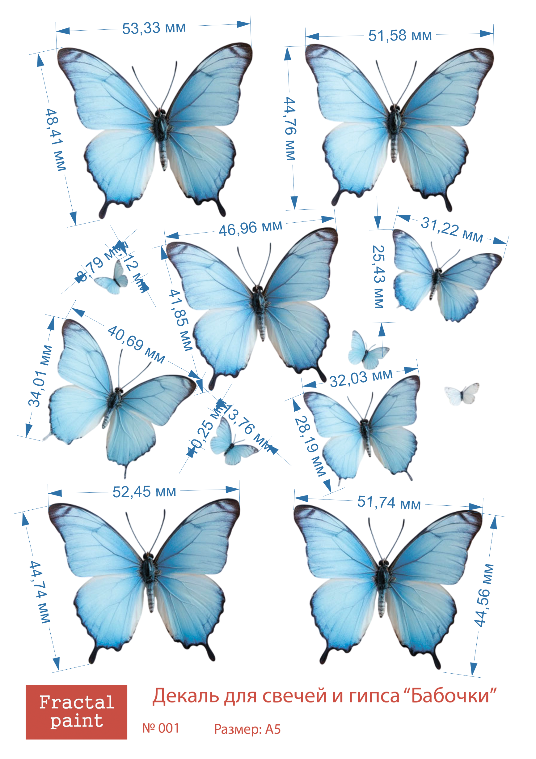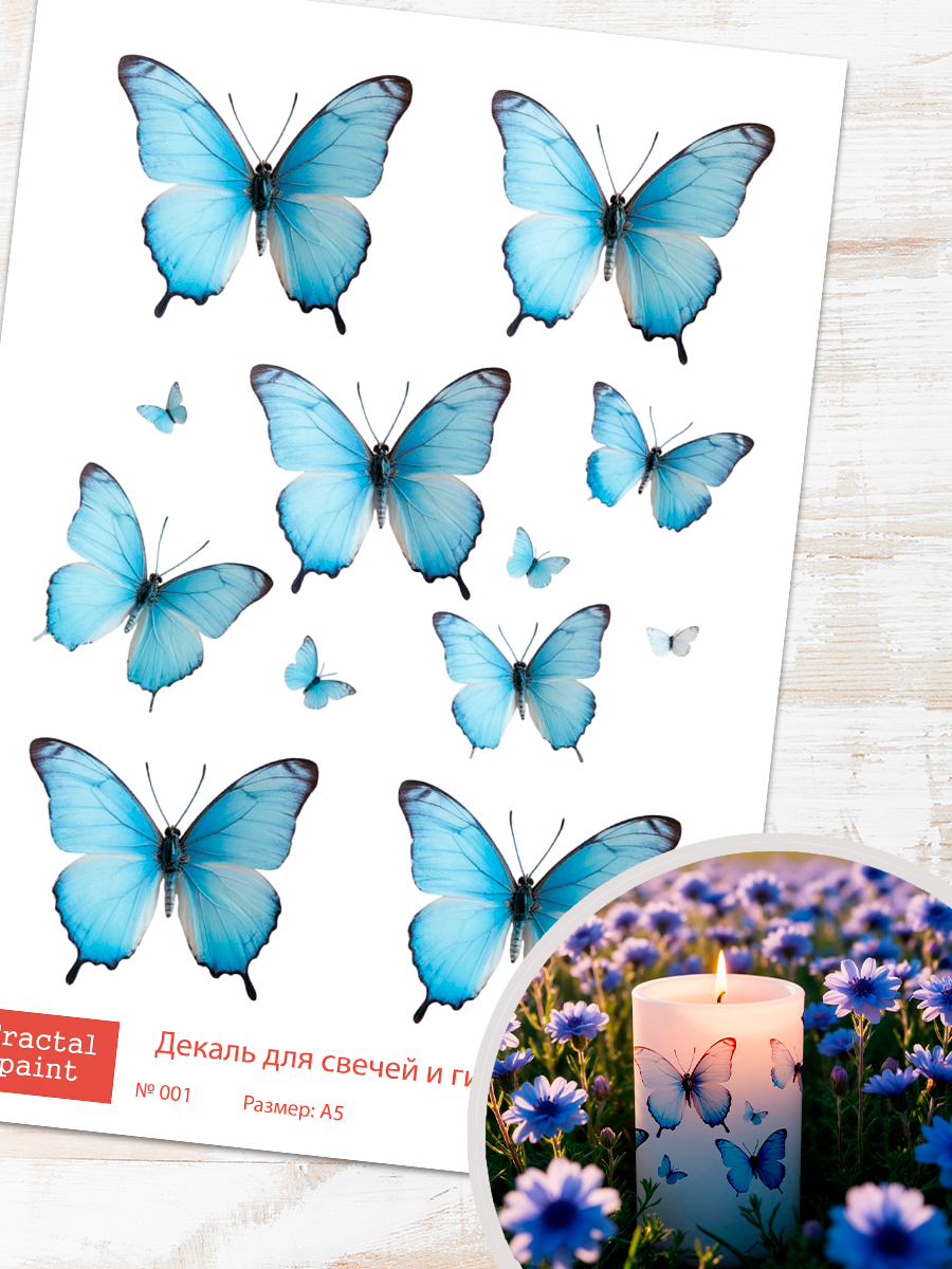 Трансфер переводной - декаль для свечей и гипса бабочки 001 А5