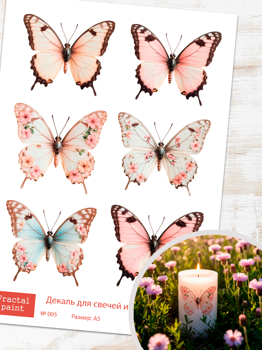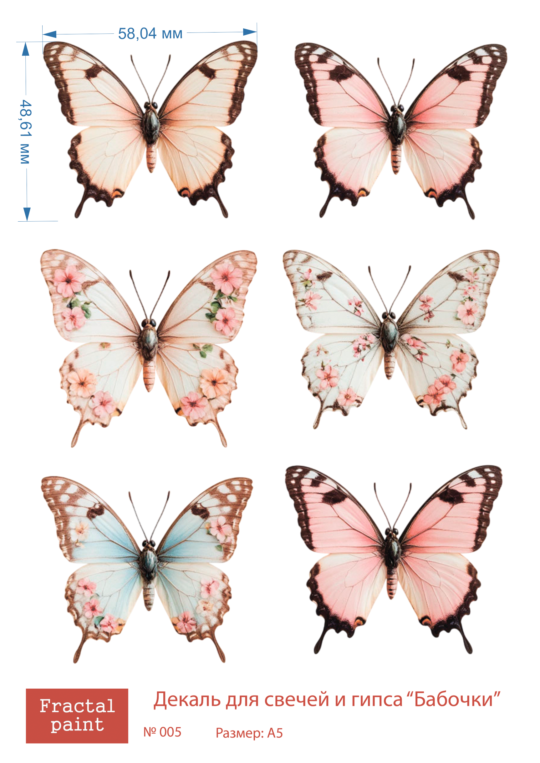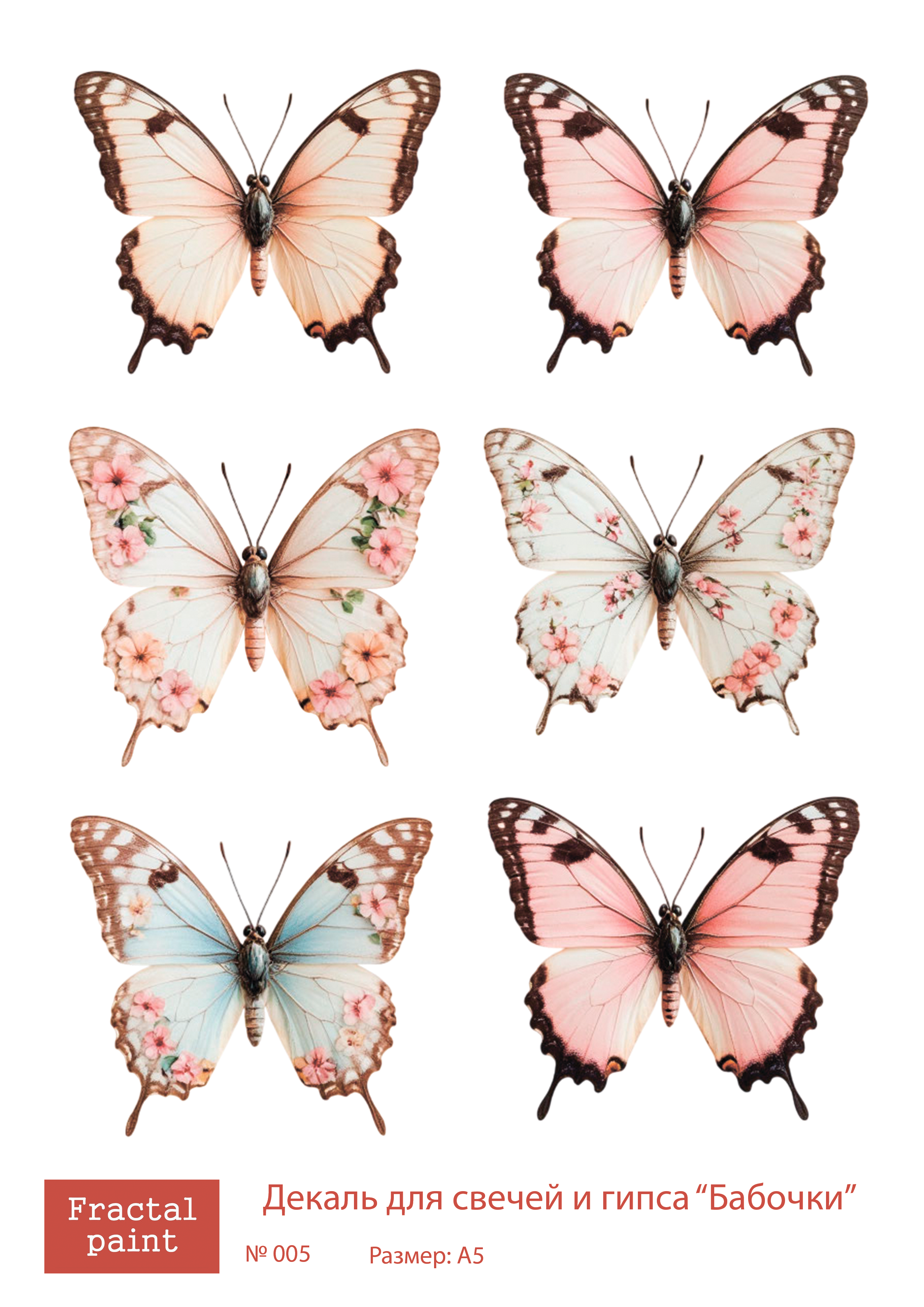 Трансфер переводной - декаль для свечей и гипса бабочки 005 А5