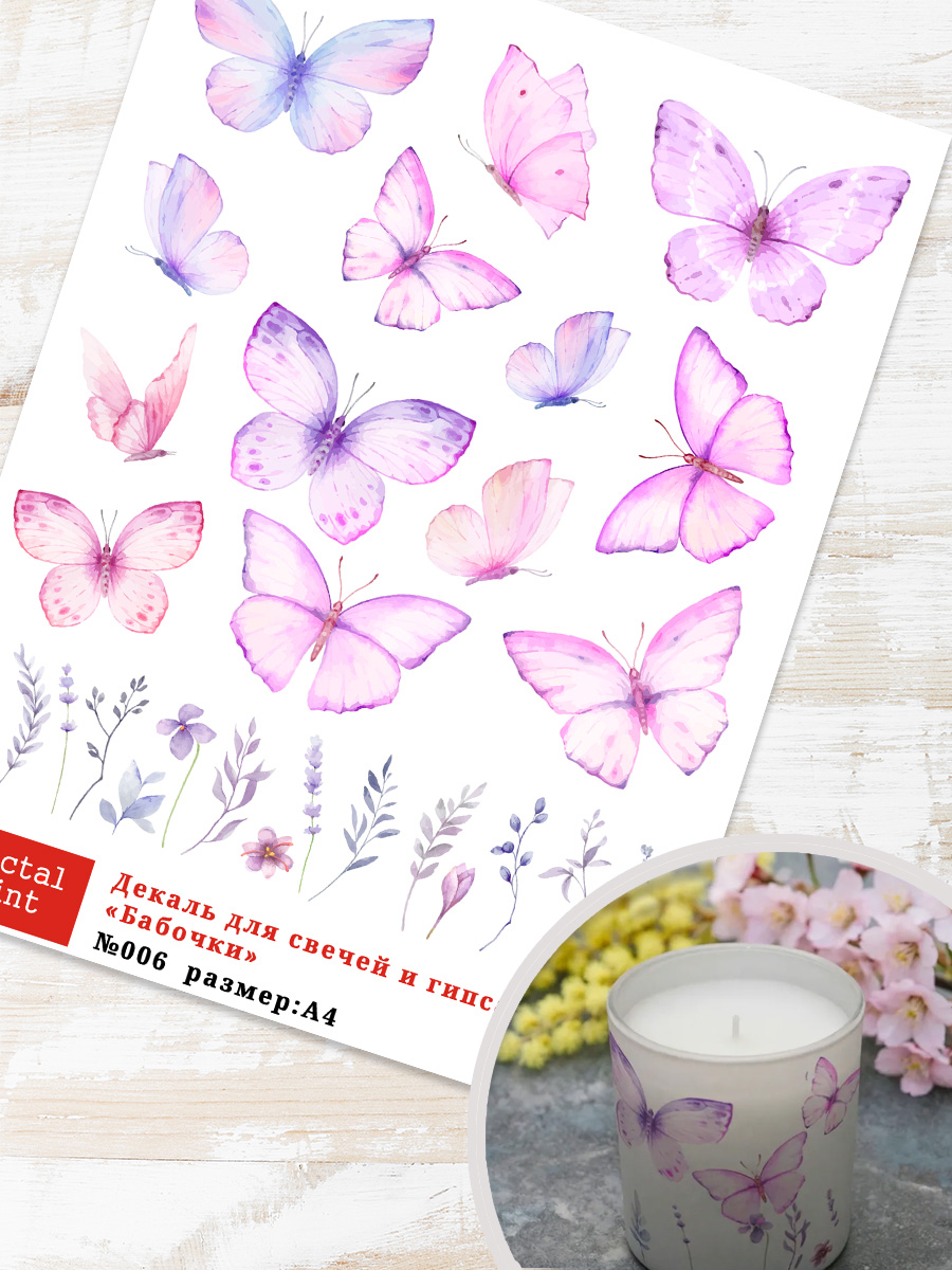 Трансфер переводной - декаль для свечей и гипса бабочки 006