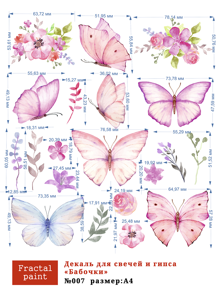 Трансфер переводной - декаль для свечей и гипса бабочки 007