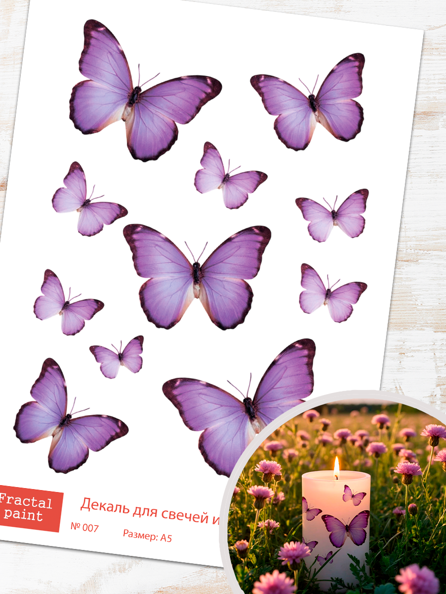 Трансфер переводной - декаль для свечей и гипса бабочки 007 А5