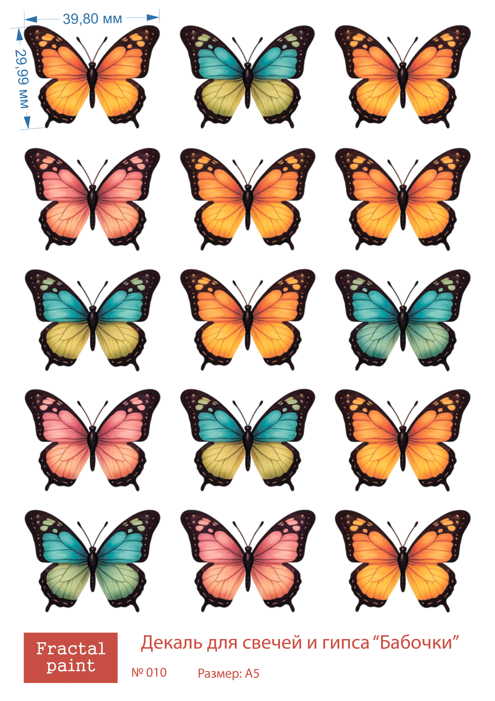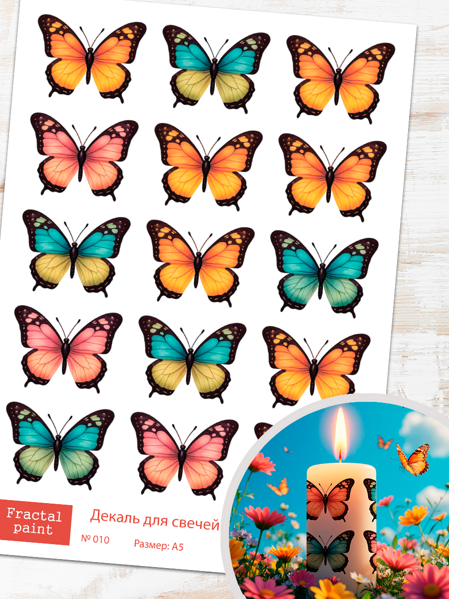 Трансфер переводной - декаль для свечей и гипса бабочки 010 А5