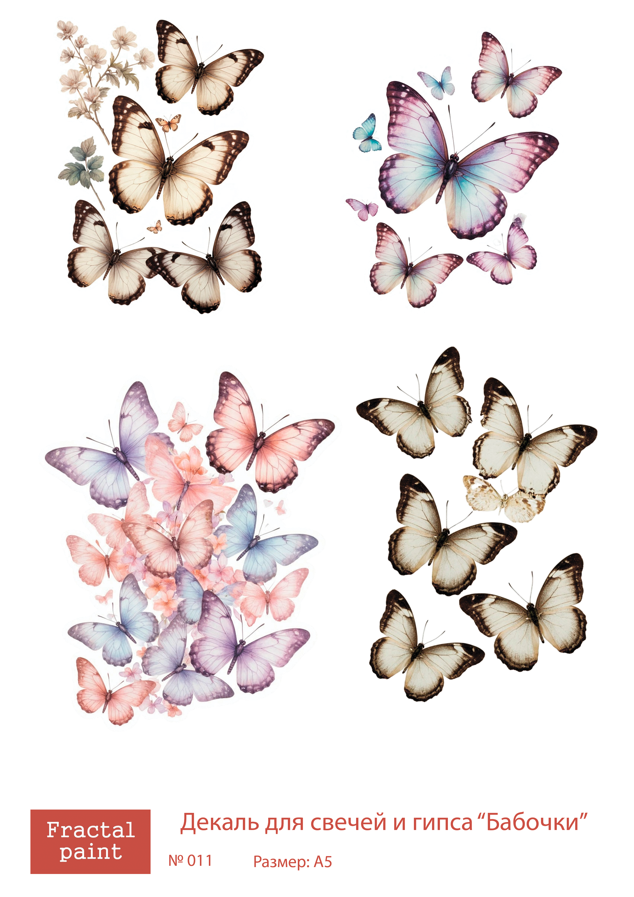 Трансфер переводной - декаль для свечей и гипса бабочки 011 А5