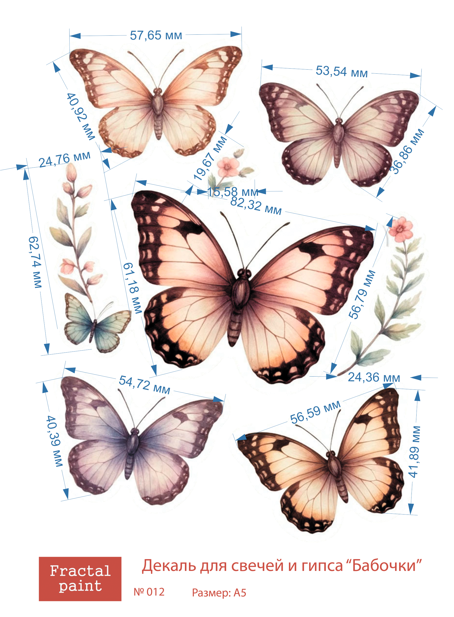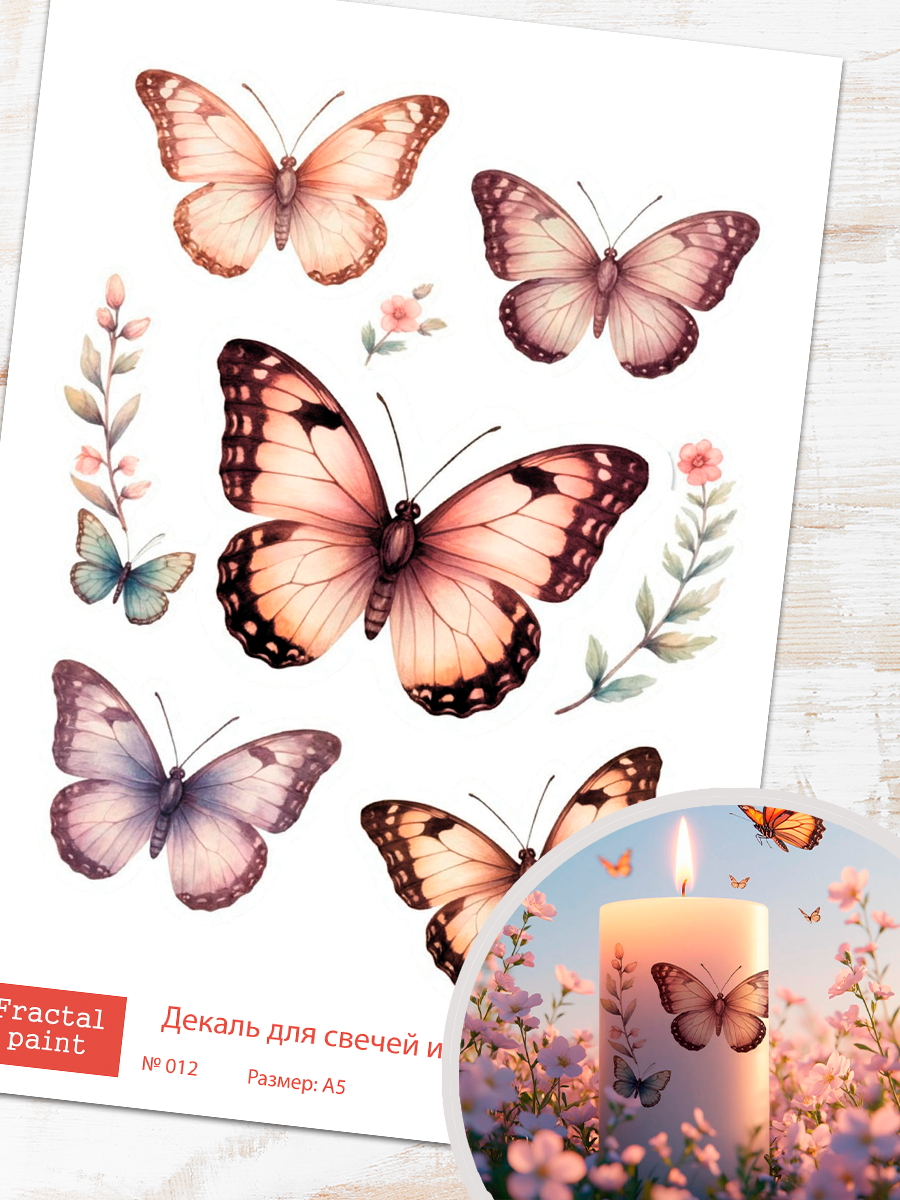 Трансфер переводной - декаль для свечей и гипса бабочки 012 А5