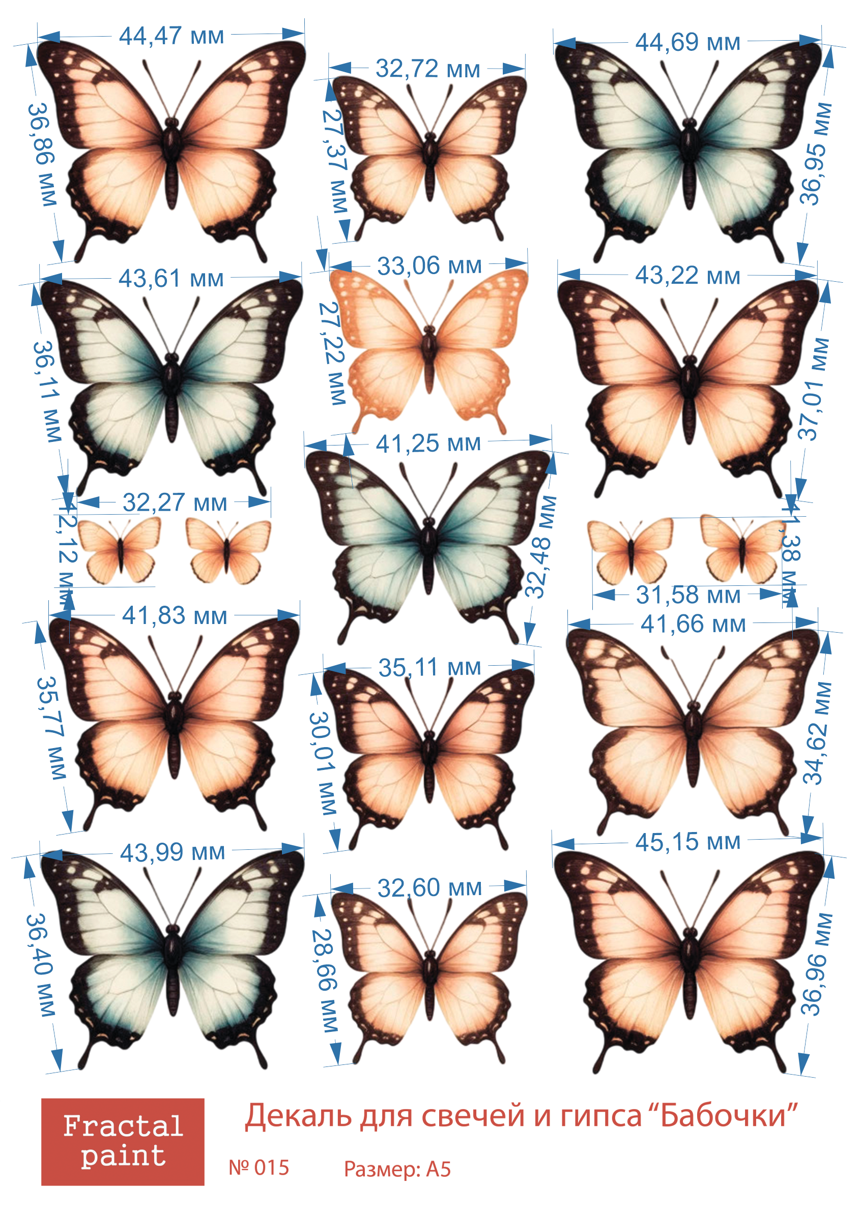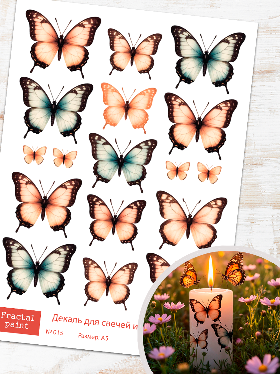 Трансфер переводной - декаль для свечей и гипса бабочки 015 А5