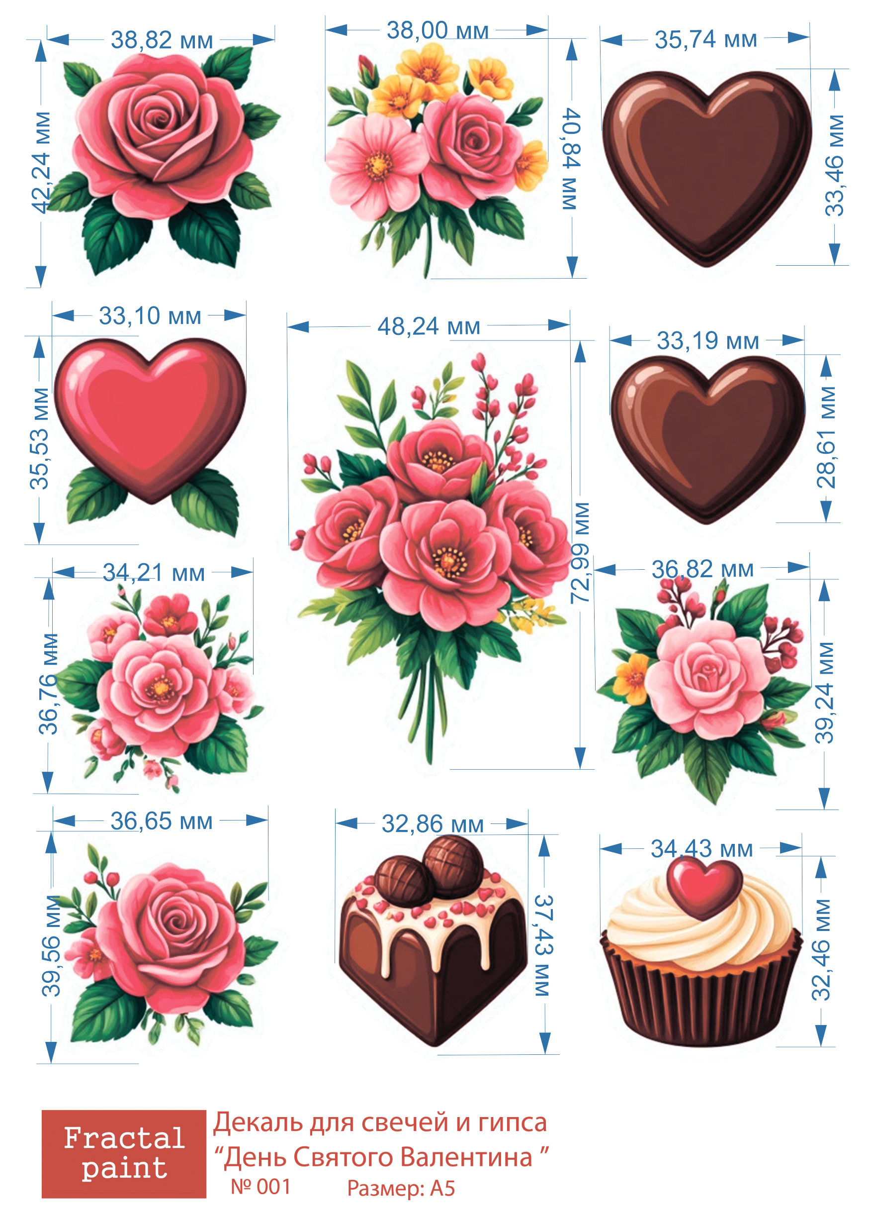 Трансфер переводной - декаль для свечей и гипса день святого валентина 001 А5