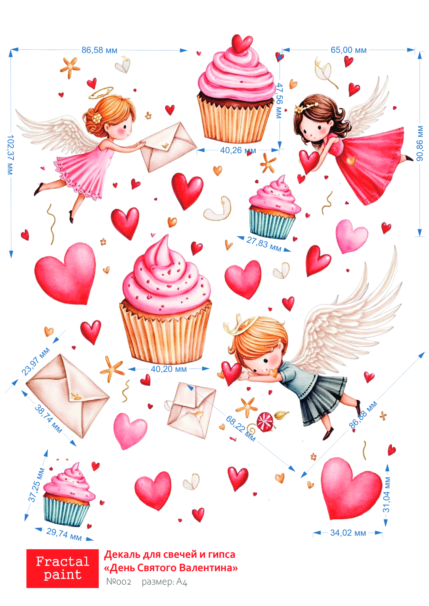 Трансфер переводной - декаль для свечей и гипса день святого Валентина 002