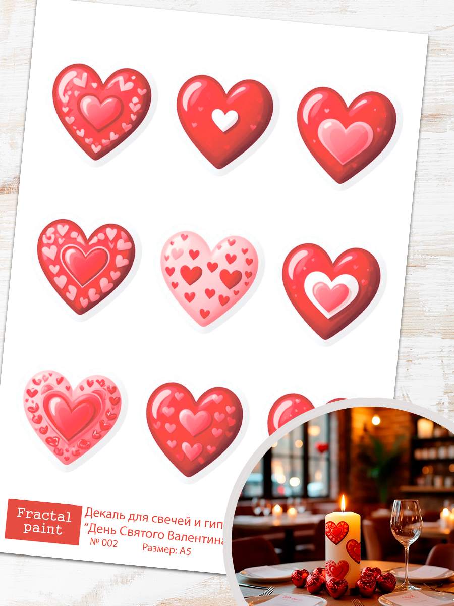 Трансфер переводной - декаль для свечей и гипса день святого валентина 002 А5