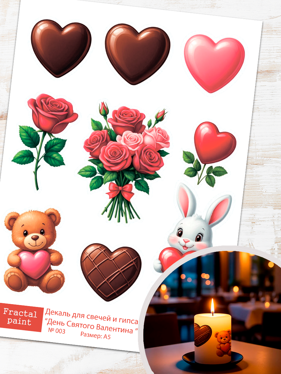 Трансфер переводной - декаль для свечей и гипса день святого валентина 003 А5