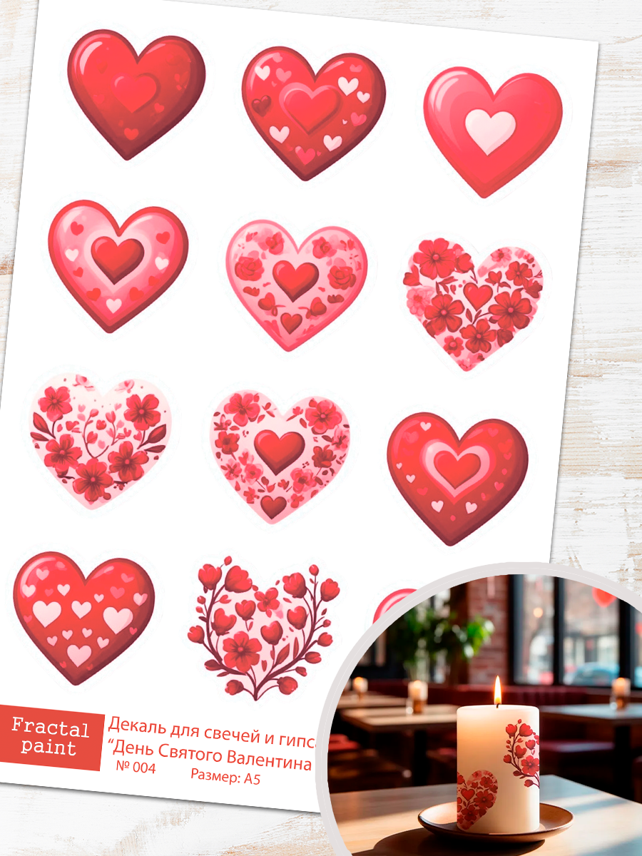 Трансфер переводной - декаль для свечей и гипса день святого валентина 004 А5