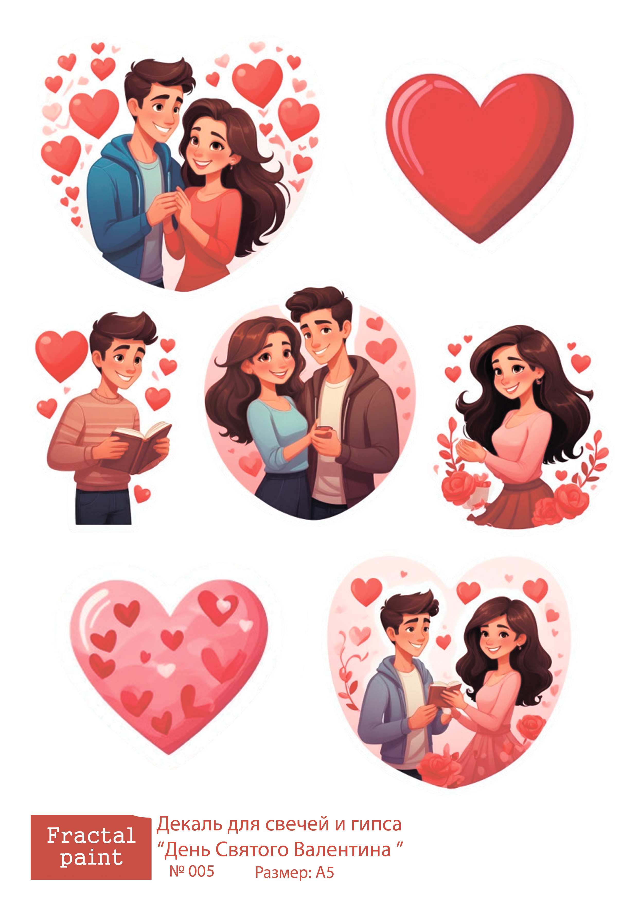 Трансфер переводной - декаль для свечей и гипса день святого валентина 005 А5