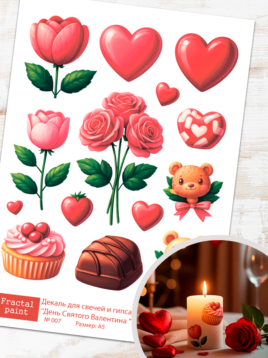 Трансфер переводной - декаль для свечей и гипса день святого валентина 007 А5
