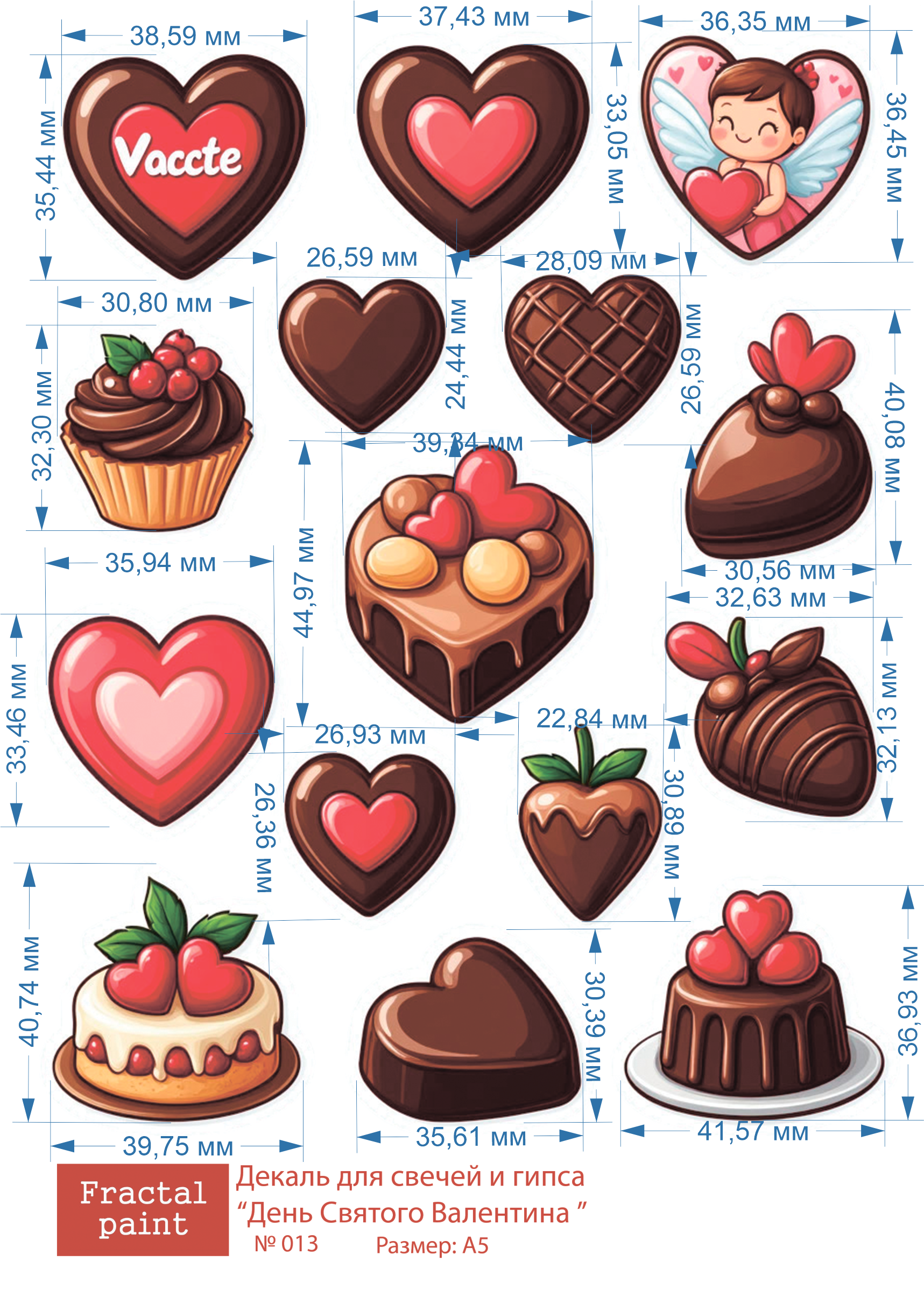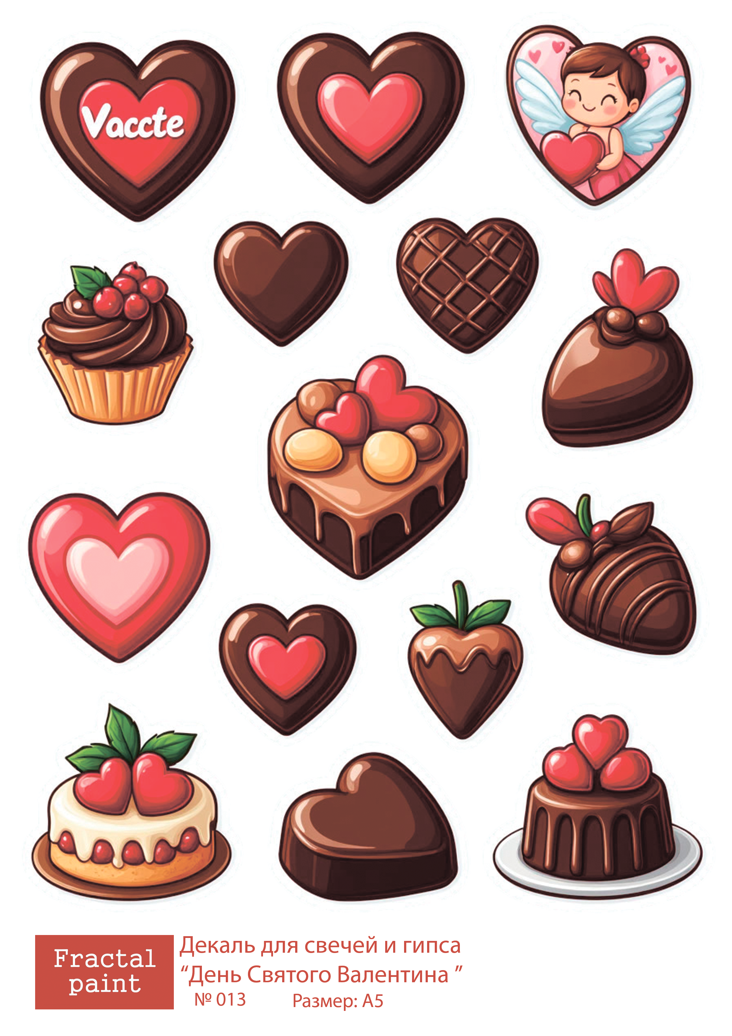 Трансфер переводной - декаль для свечей и гипса день святого валентина 013 А5