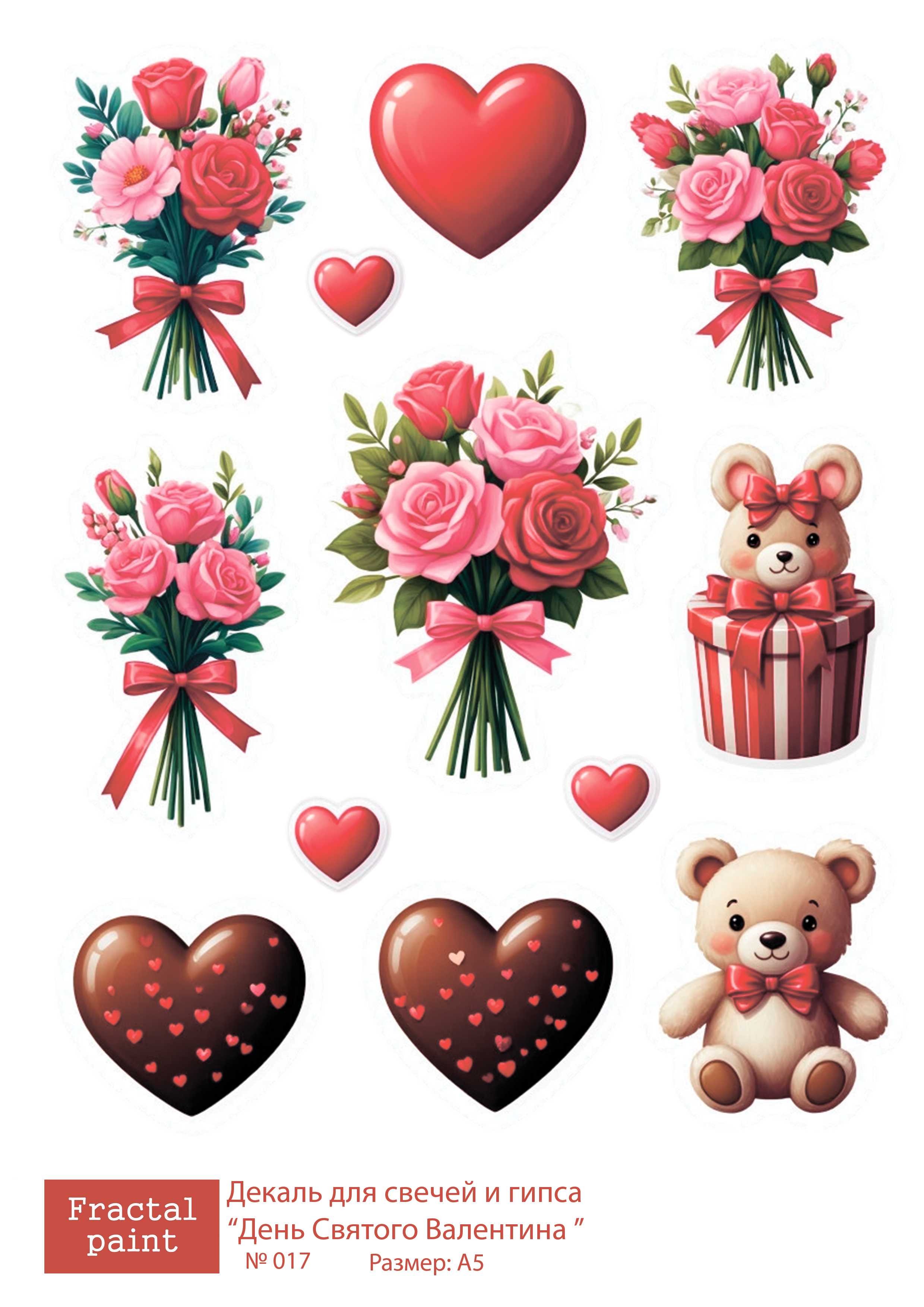 Трансфер переводной - декаль для свечей и гипса день святого валентина 017 А5