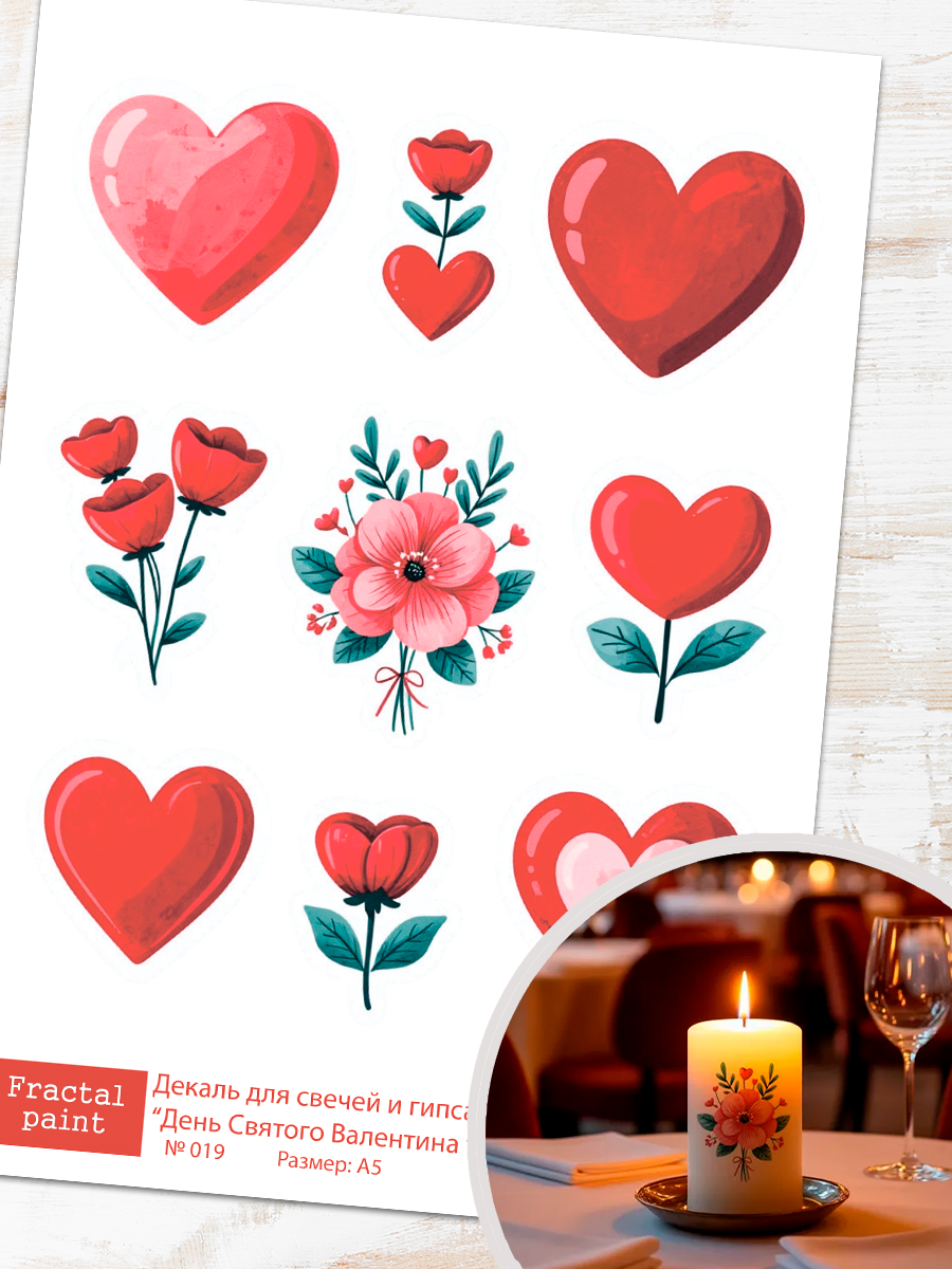 Трансфер переводной - декаль для свечей и гипса день святого валентина 019 А5