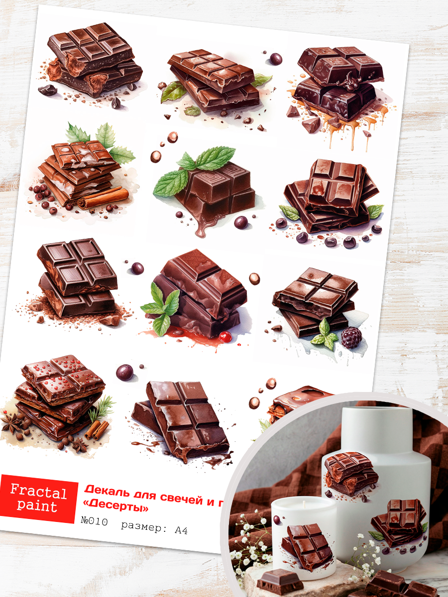 Трансфер переводной - декаль для свечей и гипса десерты 010