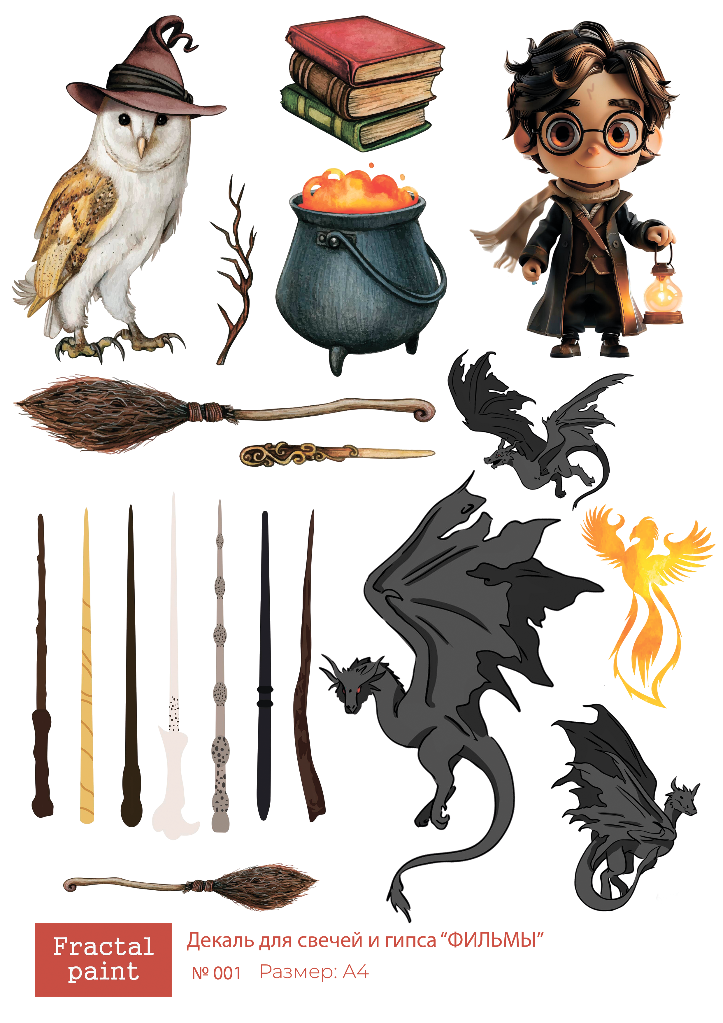 Трансфер переводной - декаль для свечей и гипса фильмы 001