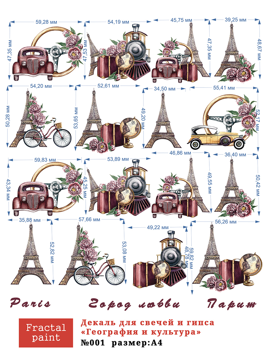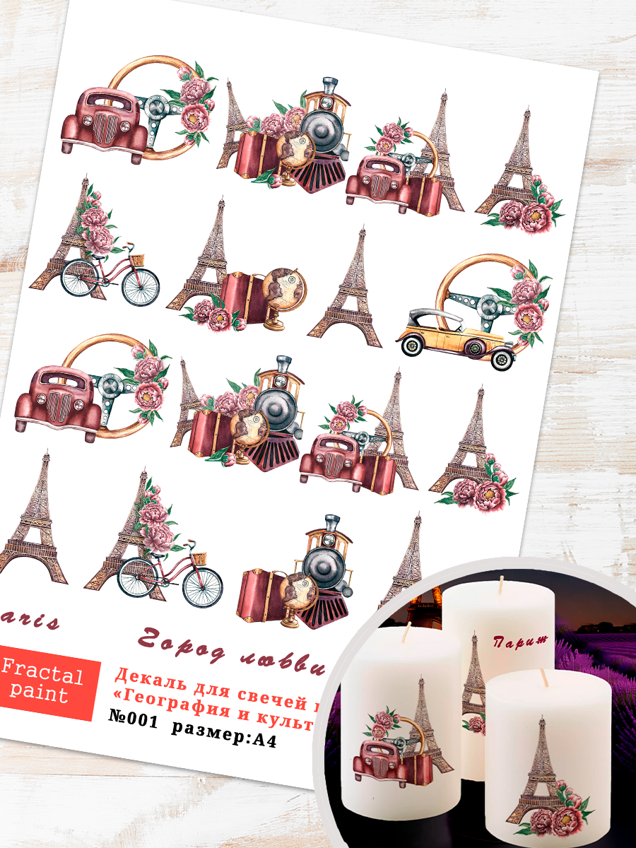 Трансфер переводной - декаль для свечей и гипса география, культура 001