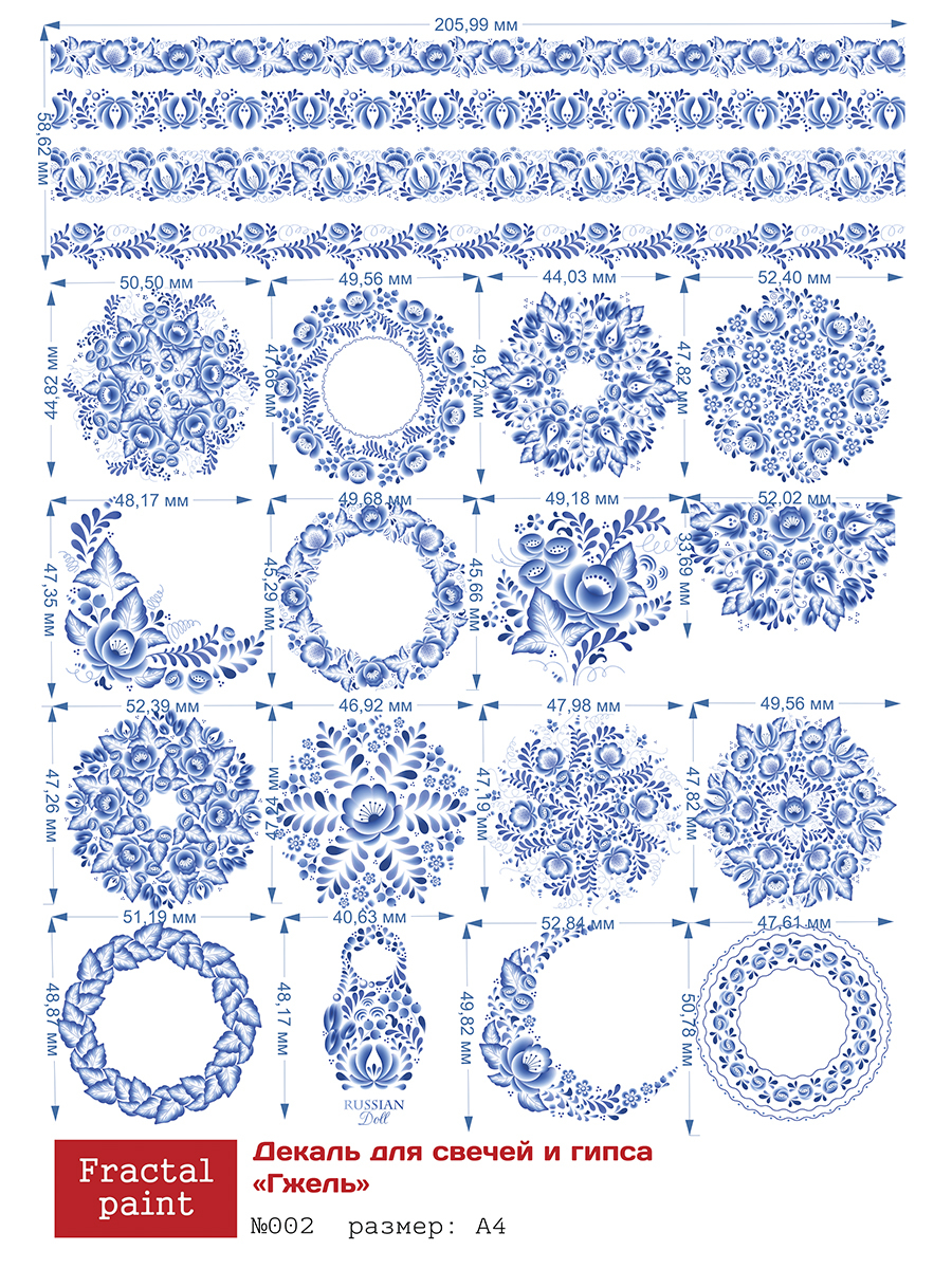 Трансфер переводной - декаль для свечей и гипса гжель 002