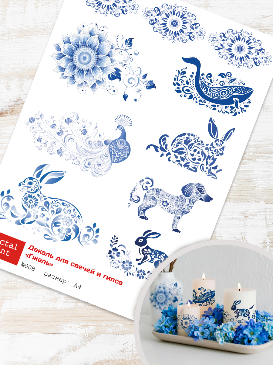 Декали для свечей и гипса – это стильный и функциональный инструмент для декора, который открывает широкие возможности для творчества. Они представляют собой универсальный материал, способный преобразить не только свечи и гипсовые изделия, но и керамику, стекло, дерево, пластик и другие поверхности. Благодаря гибкой и тонкой структуре декали легко адаптируются к форме изделия, обеспечивая качественное прилегание даже на сложных участках. Пленка с устойчивым покрытием легко наносится, сохраняя яркость и четкость рисунка на длительное время.