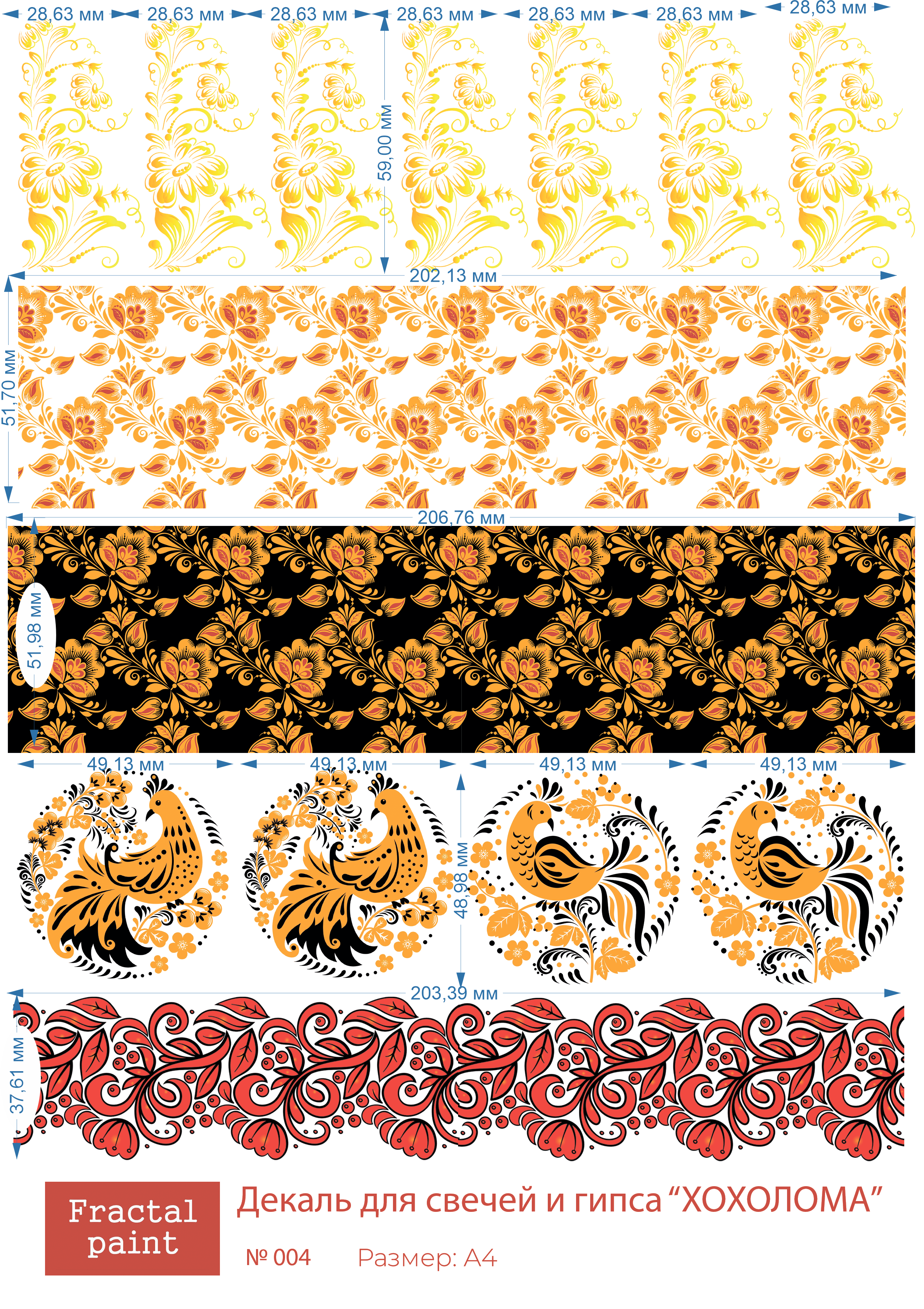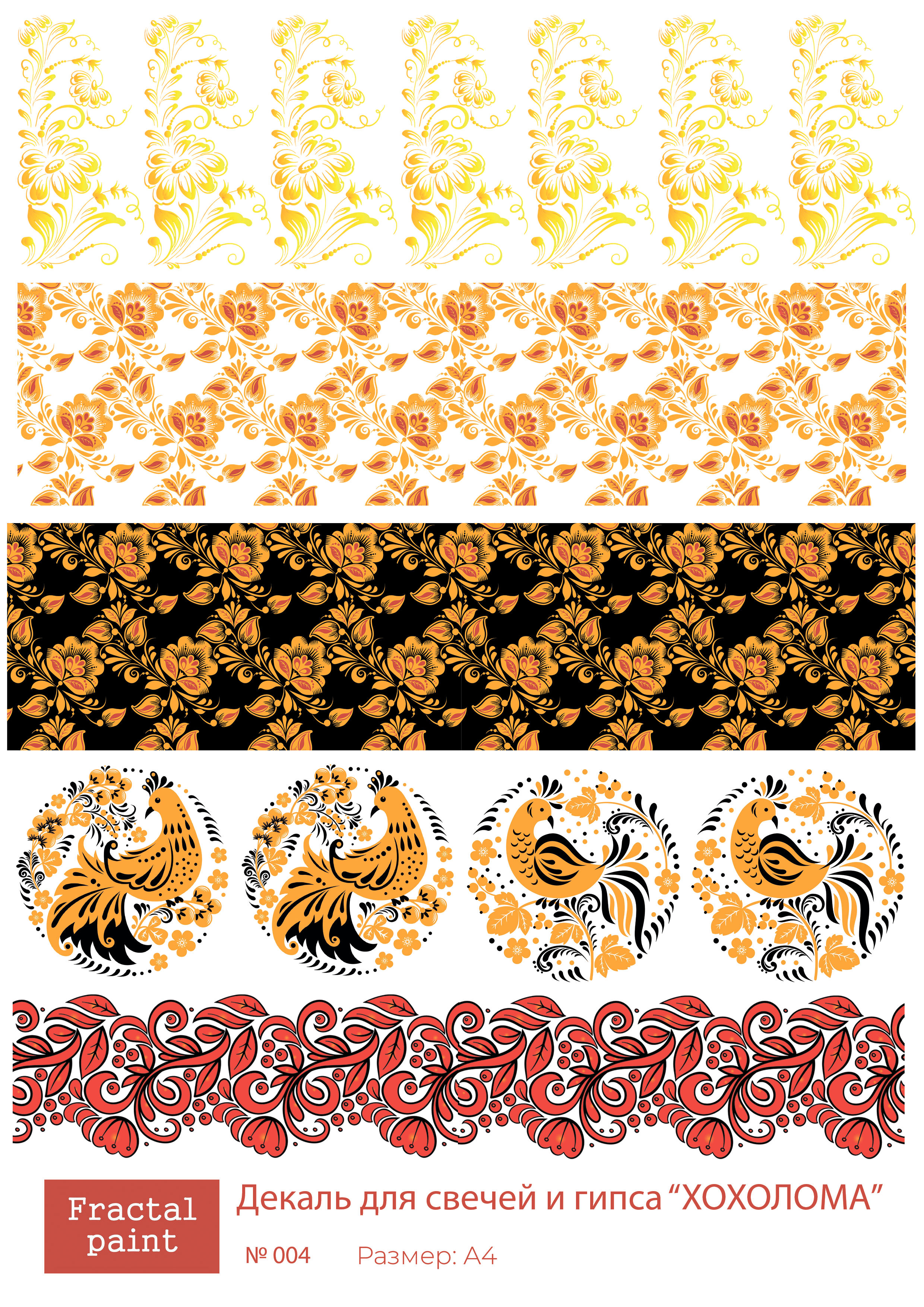 Трансфер переводной - декаль для свечей и гипса хохлома 004