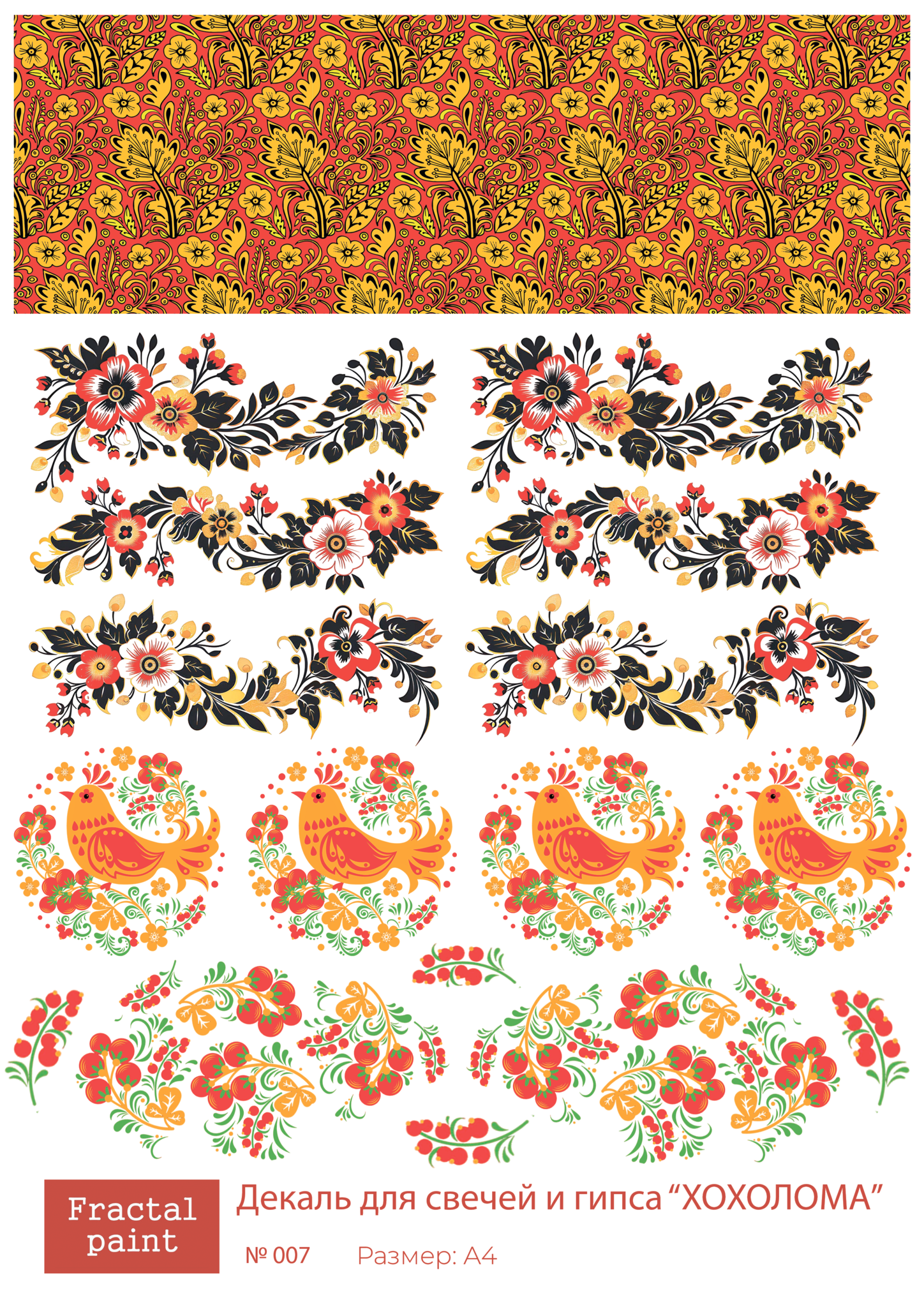Трансфер переводной - декаль для свечей и гипса хохлома 007