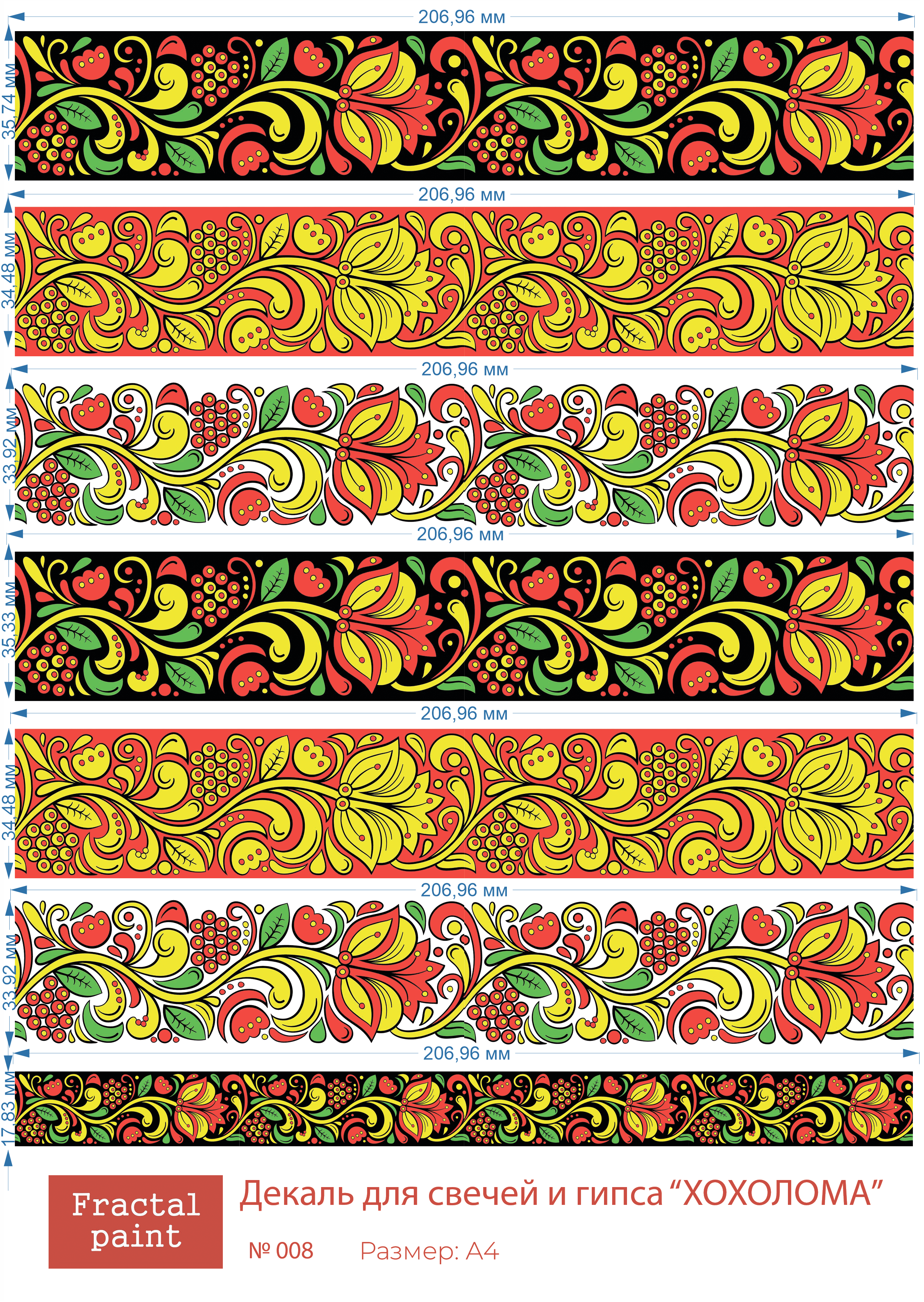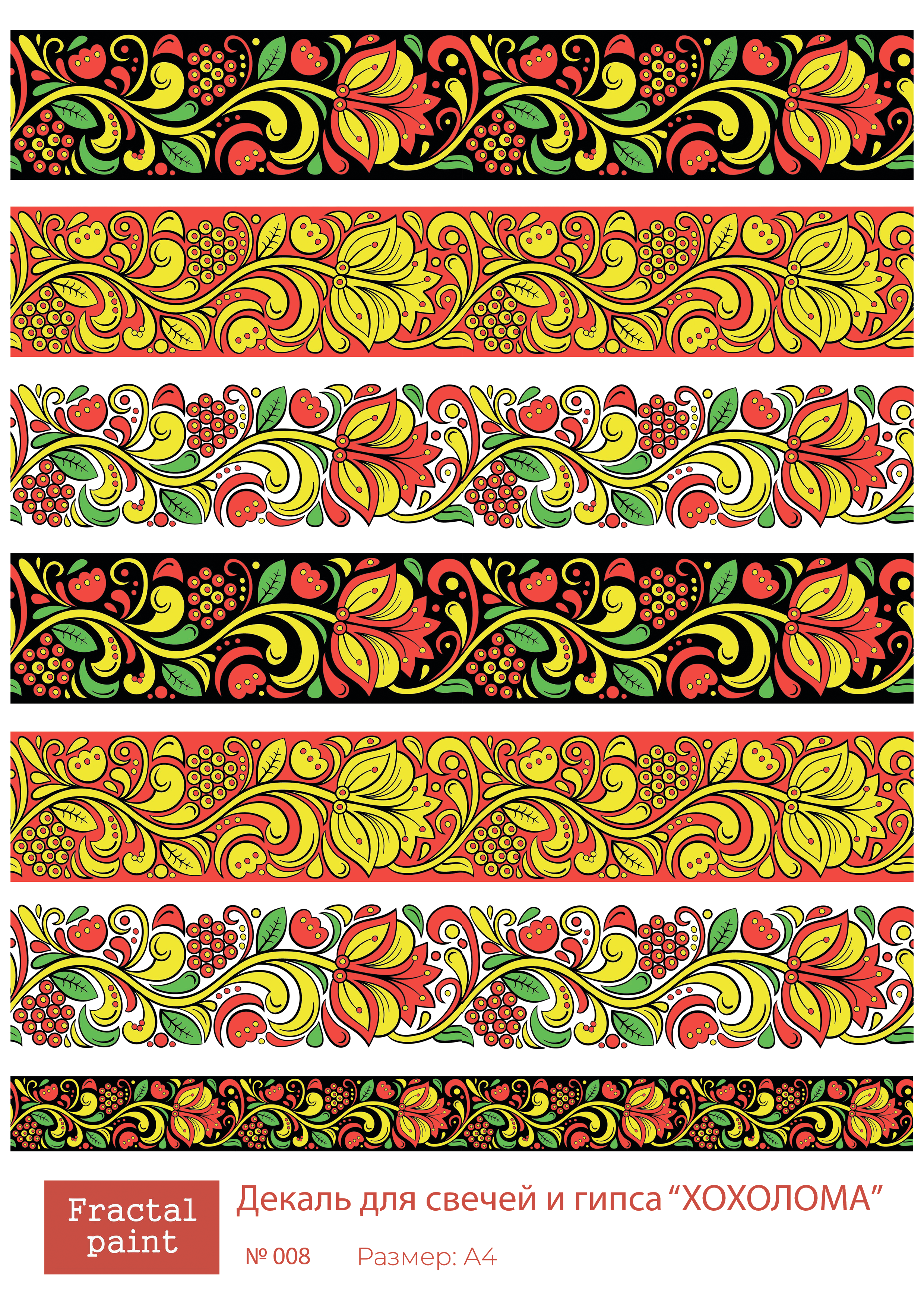 Трансфер переводной - декаль для свечей и гипса хохлома 008