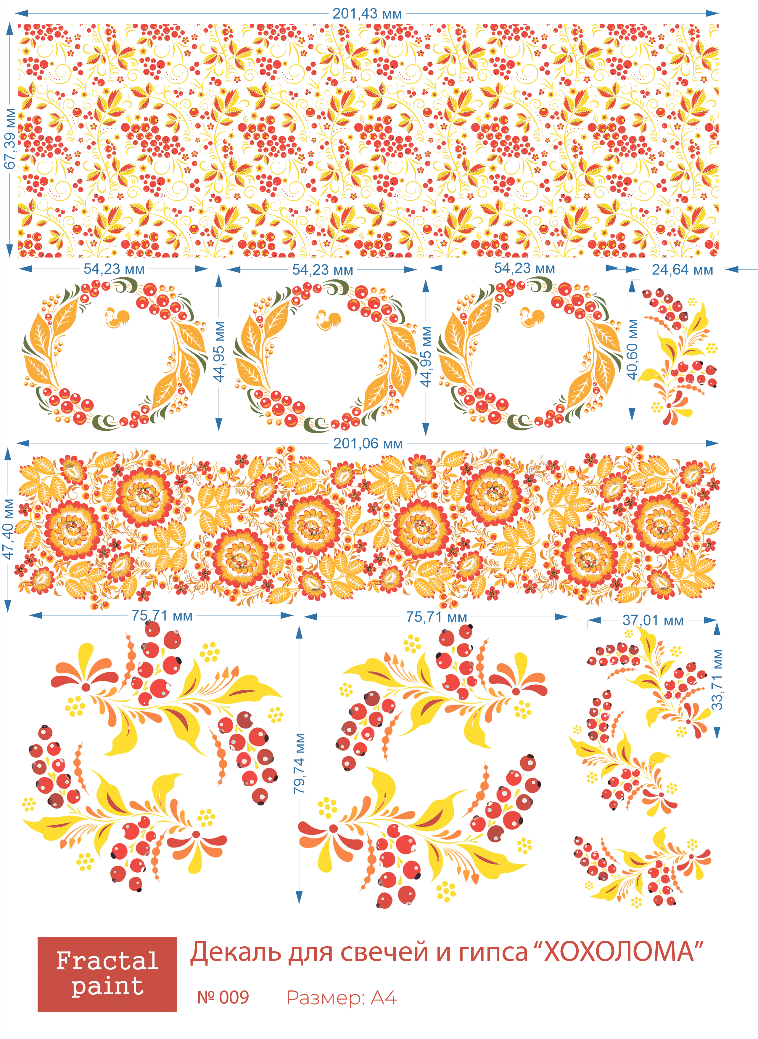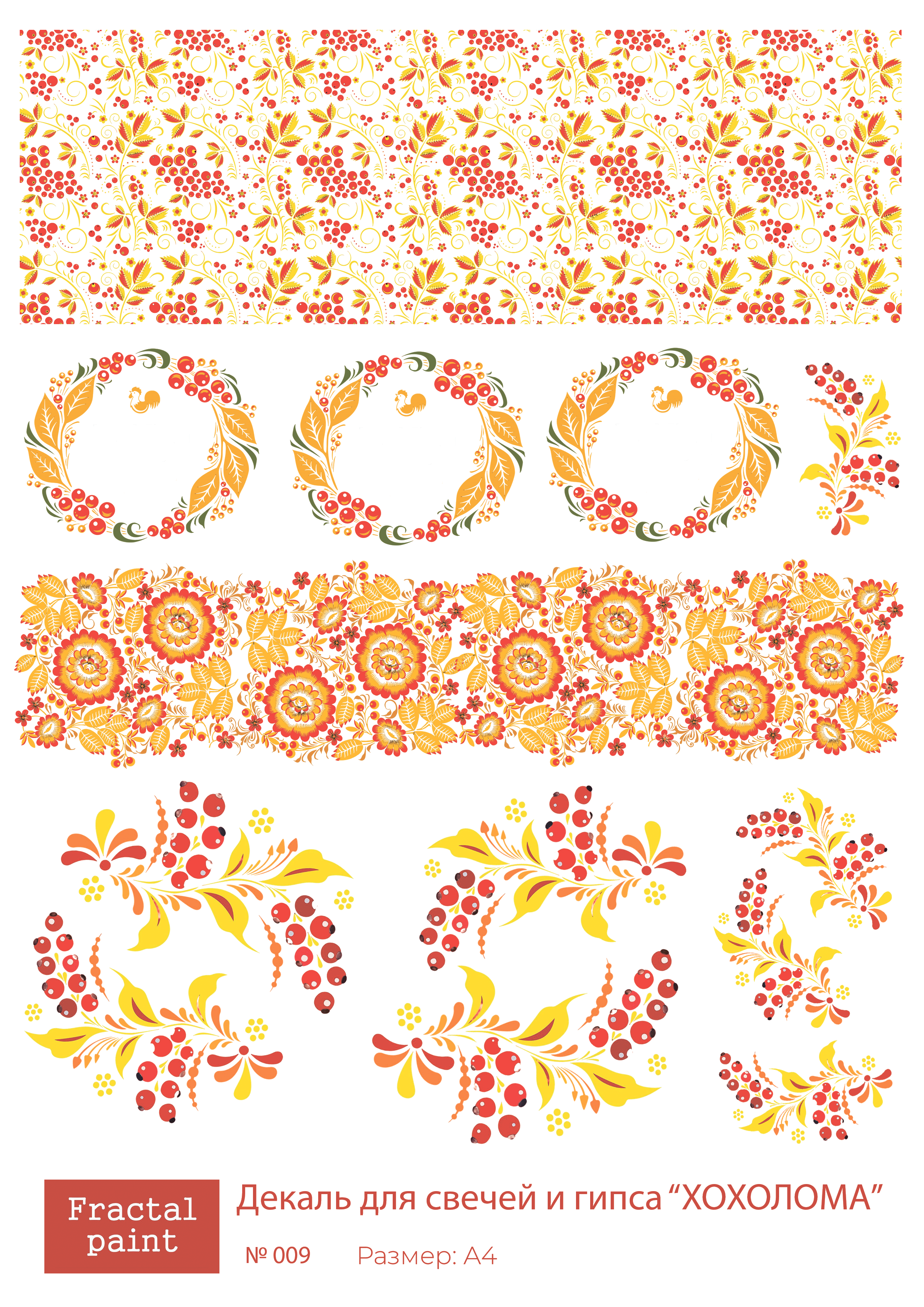 Трансфер переводной - декаль для свечей и гипса хохлома 009