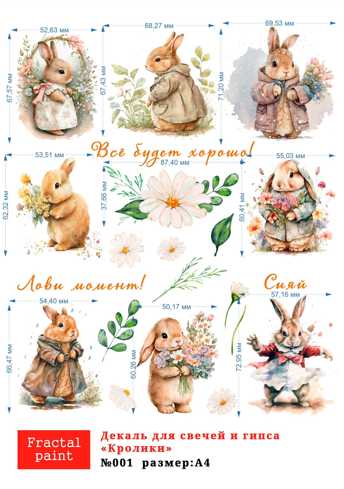 Трансфер переводной - декаль для свечей и гипса кролики 001