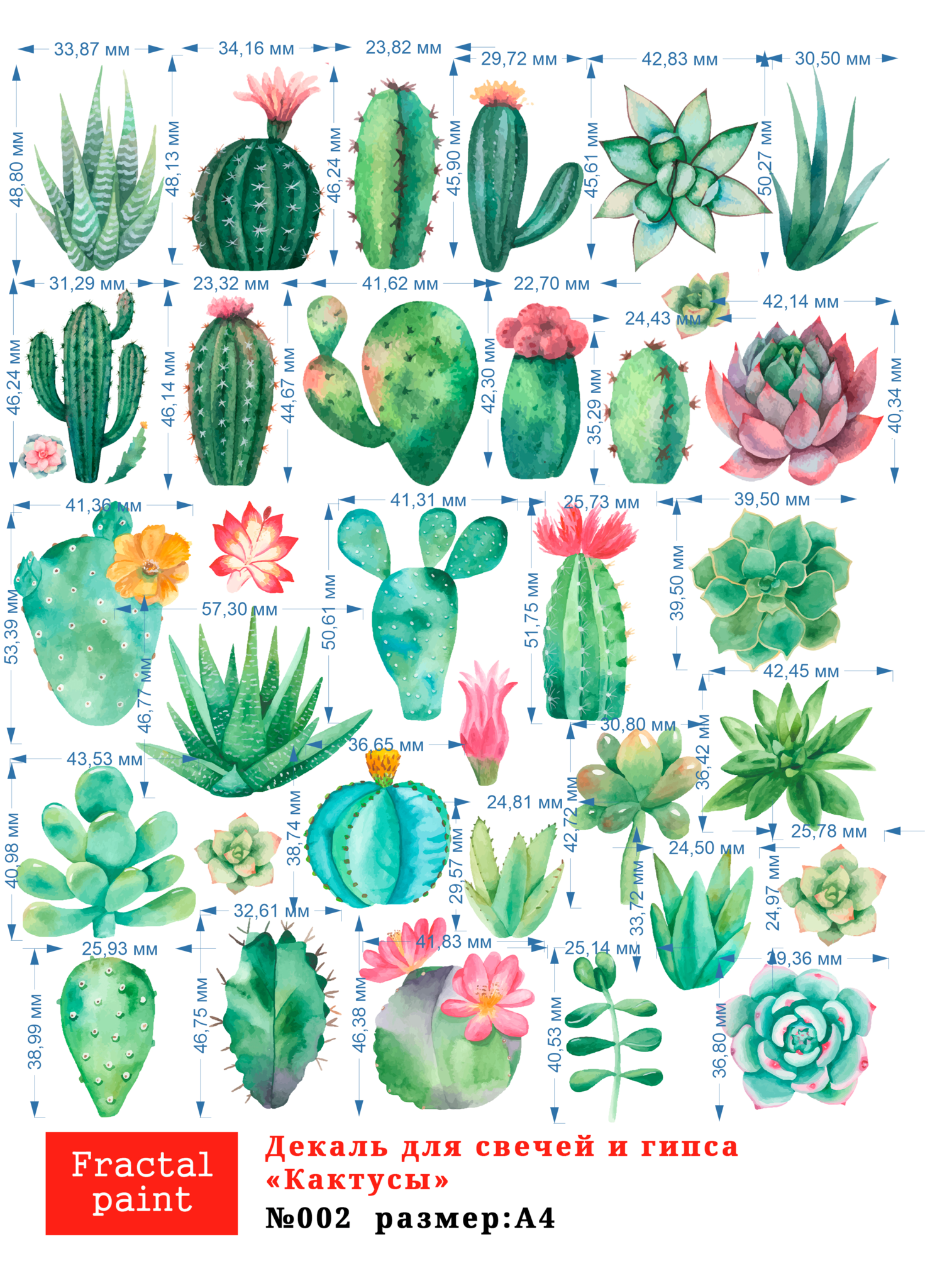 Трансфер переводной - декаль для свечей и гипса кактусы 002