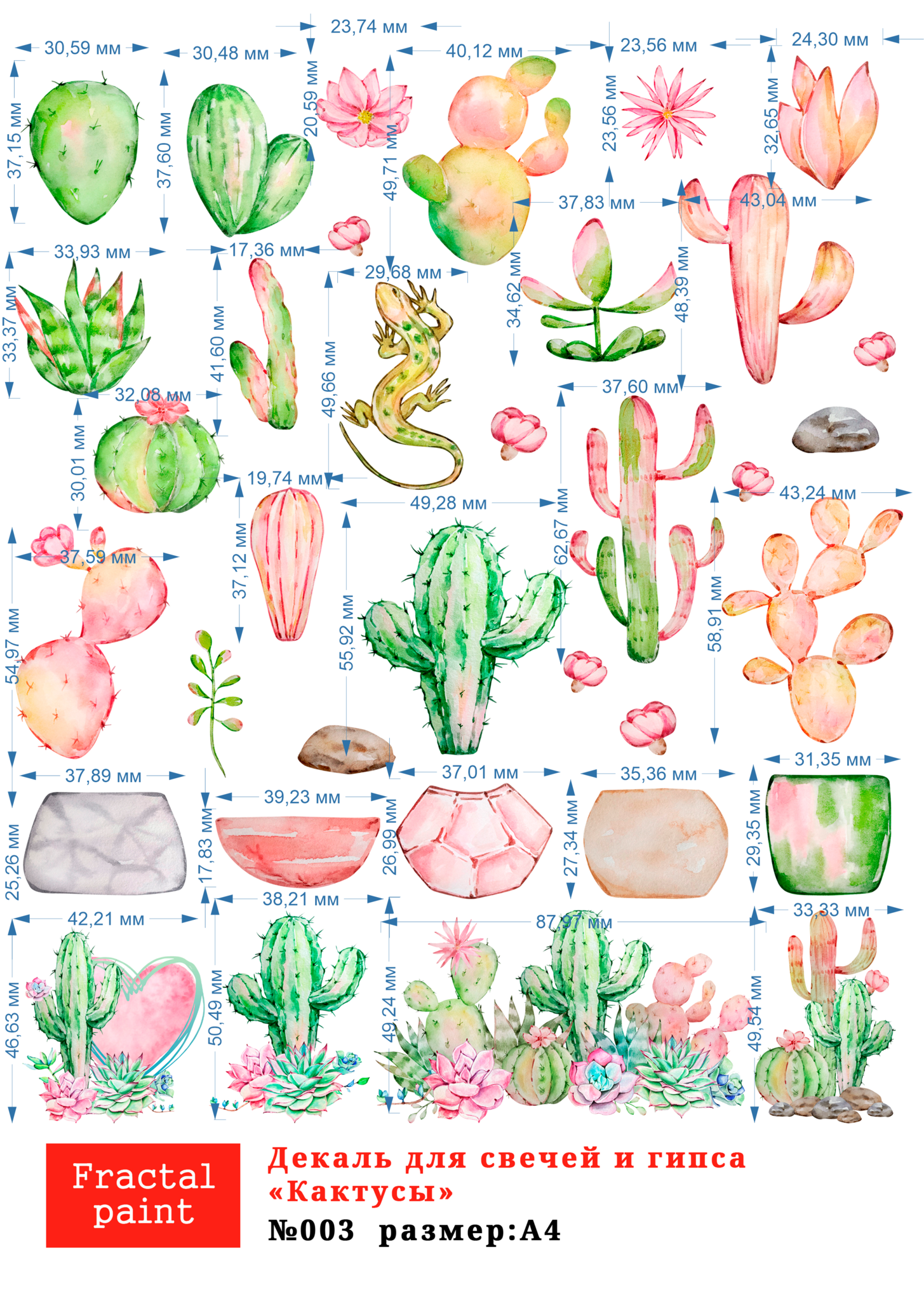 Трансфер переводной - декаль для свечей и гипса кактусы 003