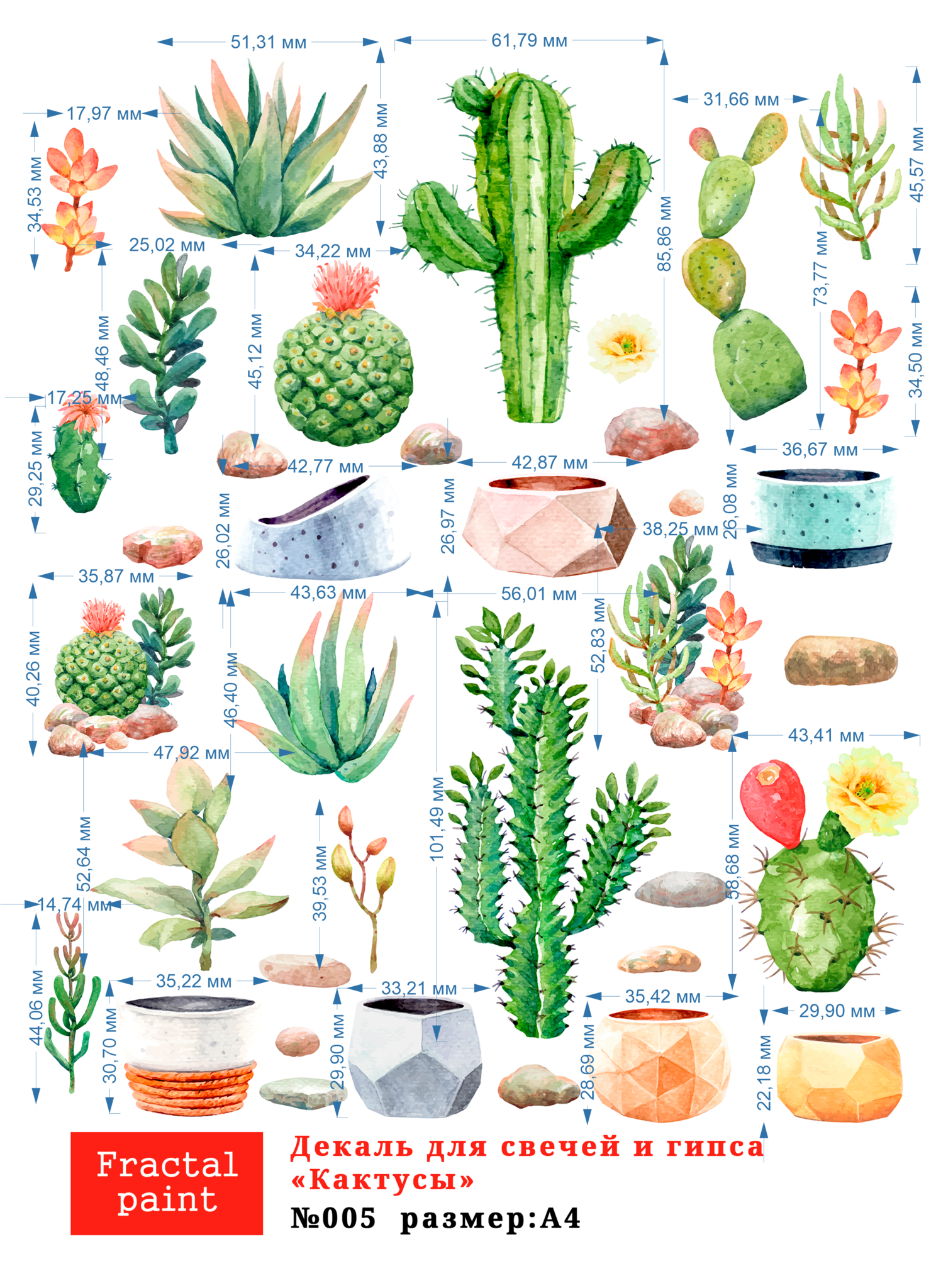 Трансфер переводной - декаль для свечей и гипса кактусы 005