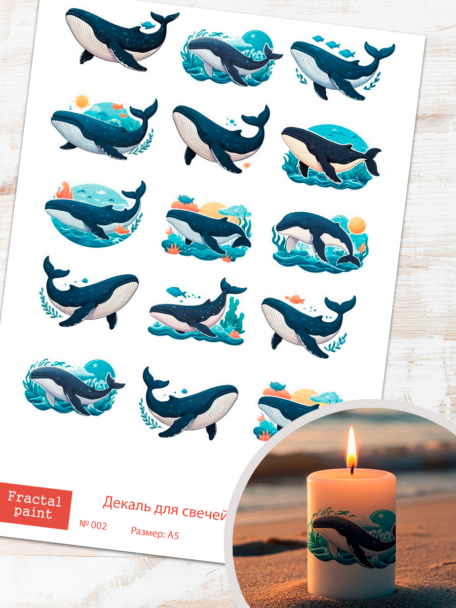 Трансфер переводной - декаль для свечей и гипса киты 002 А5