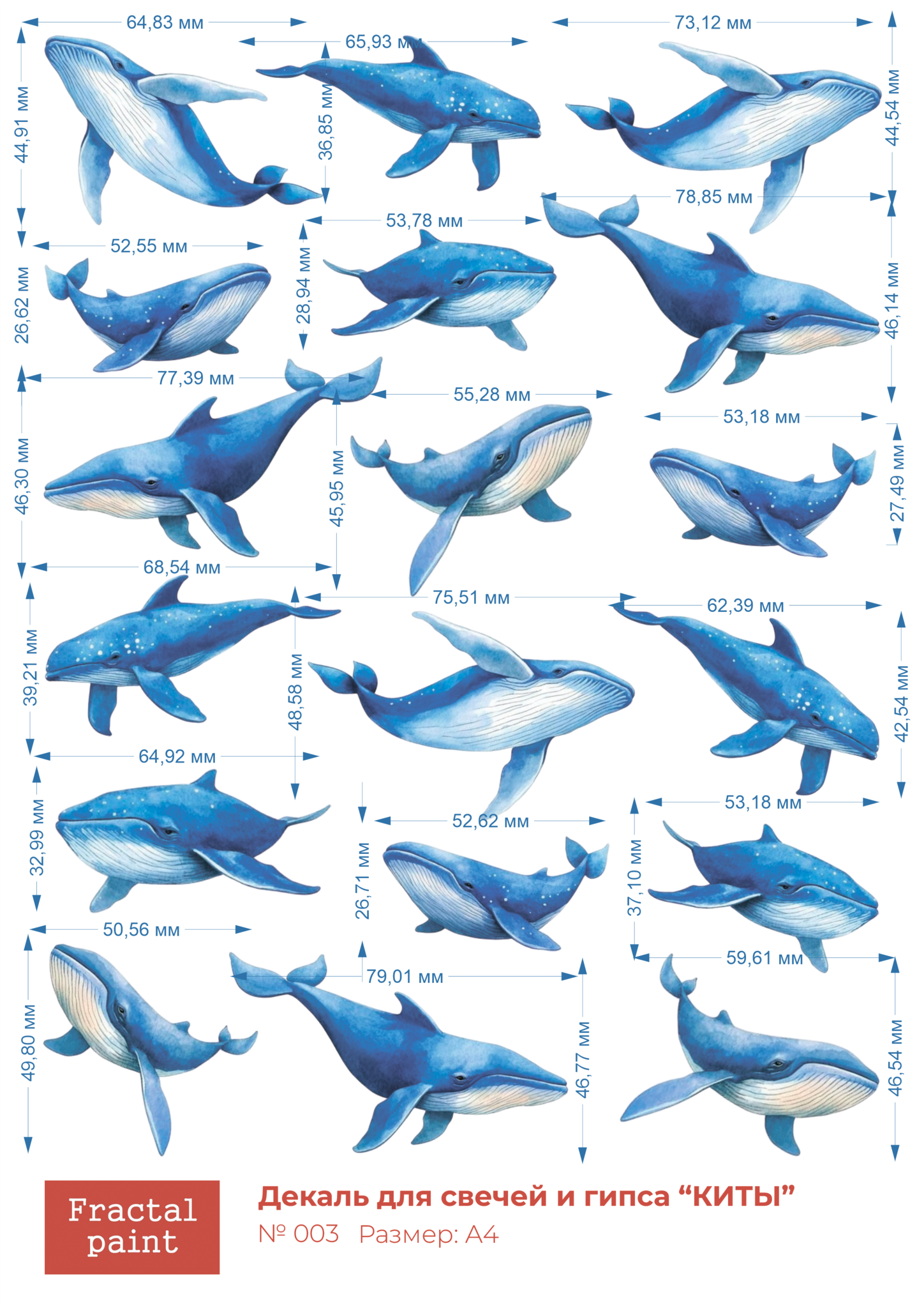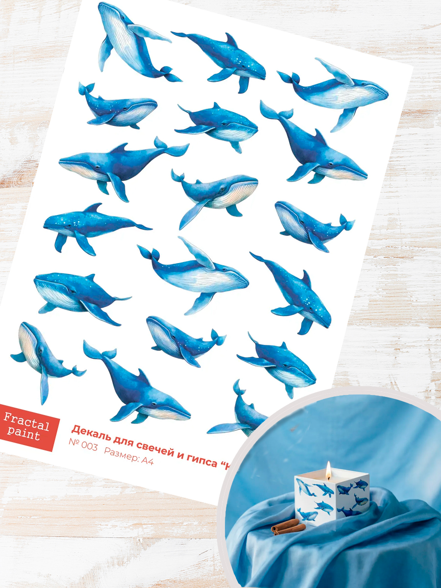 Трансфер переводной - декаль для свечей и гипса киты 003