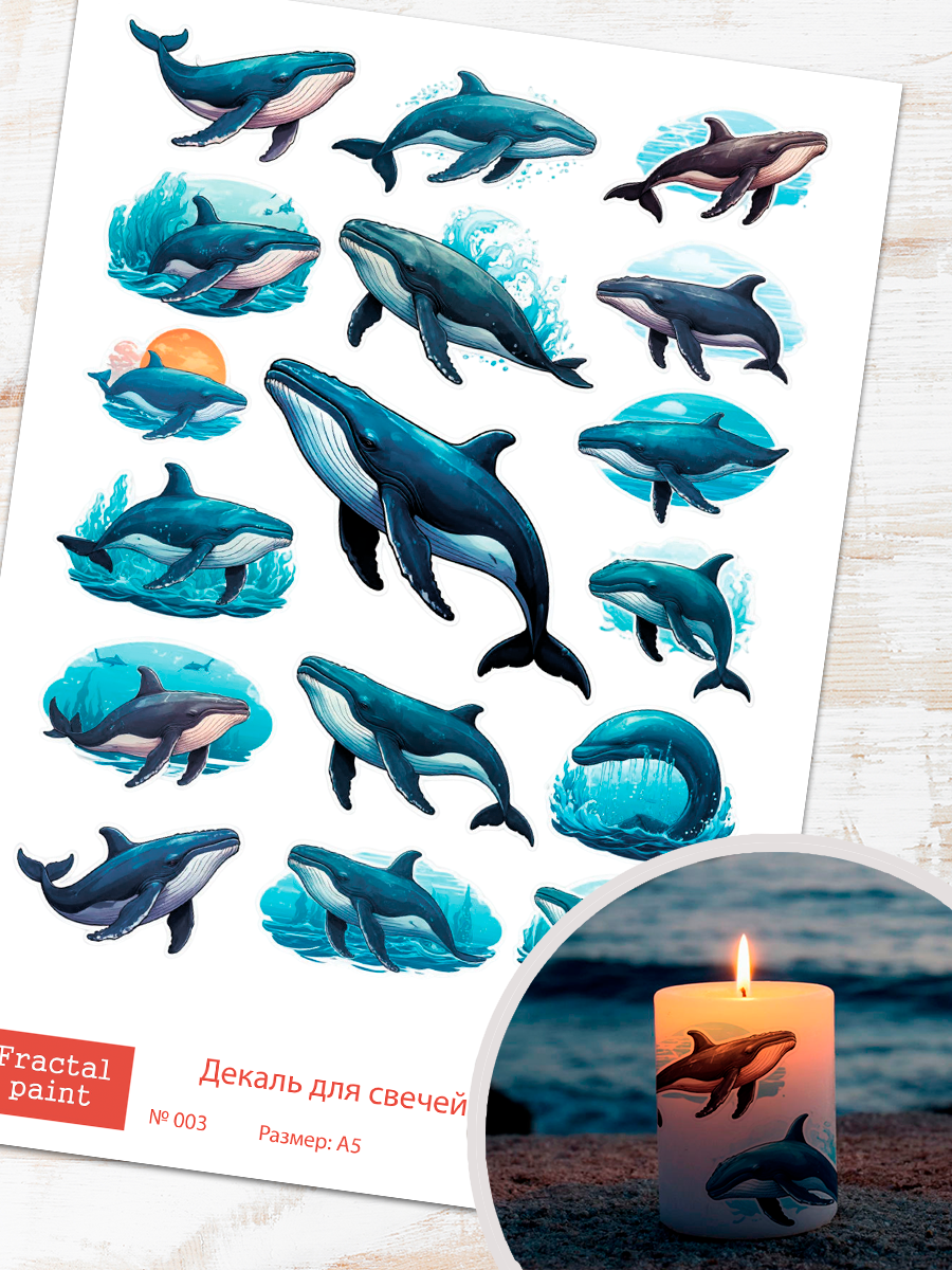 Трансфер переводной - декаль для свечей и гипса киты 003 А5