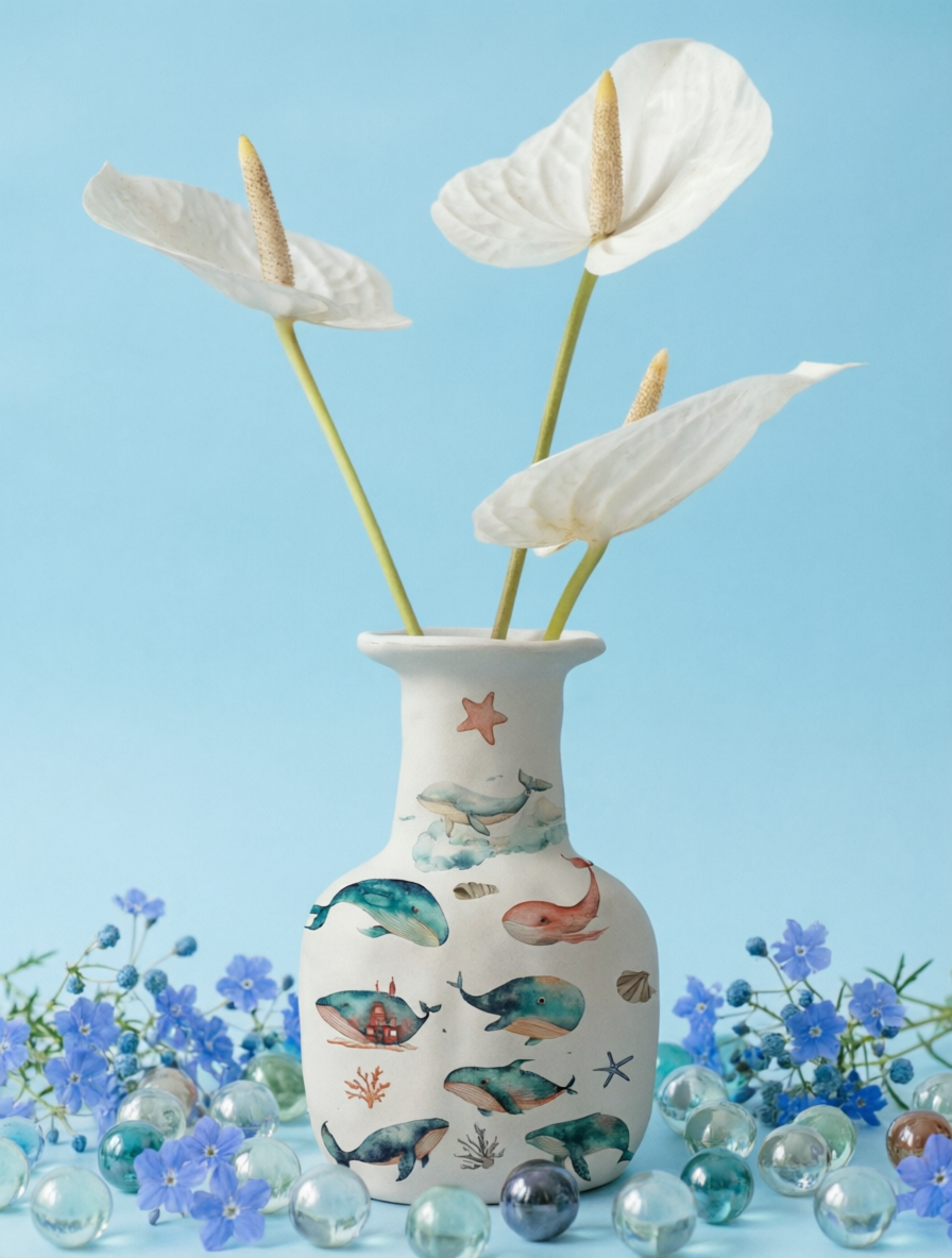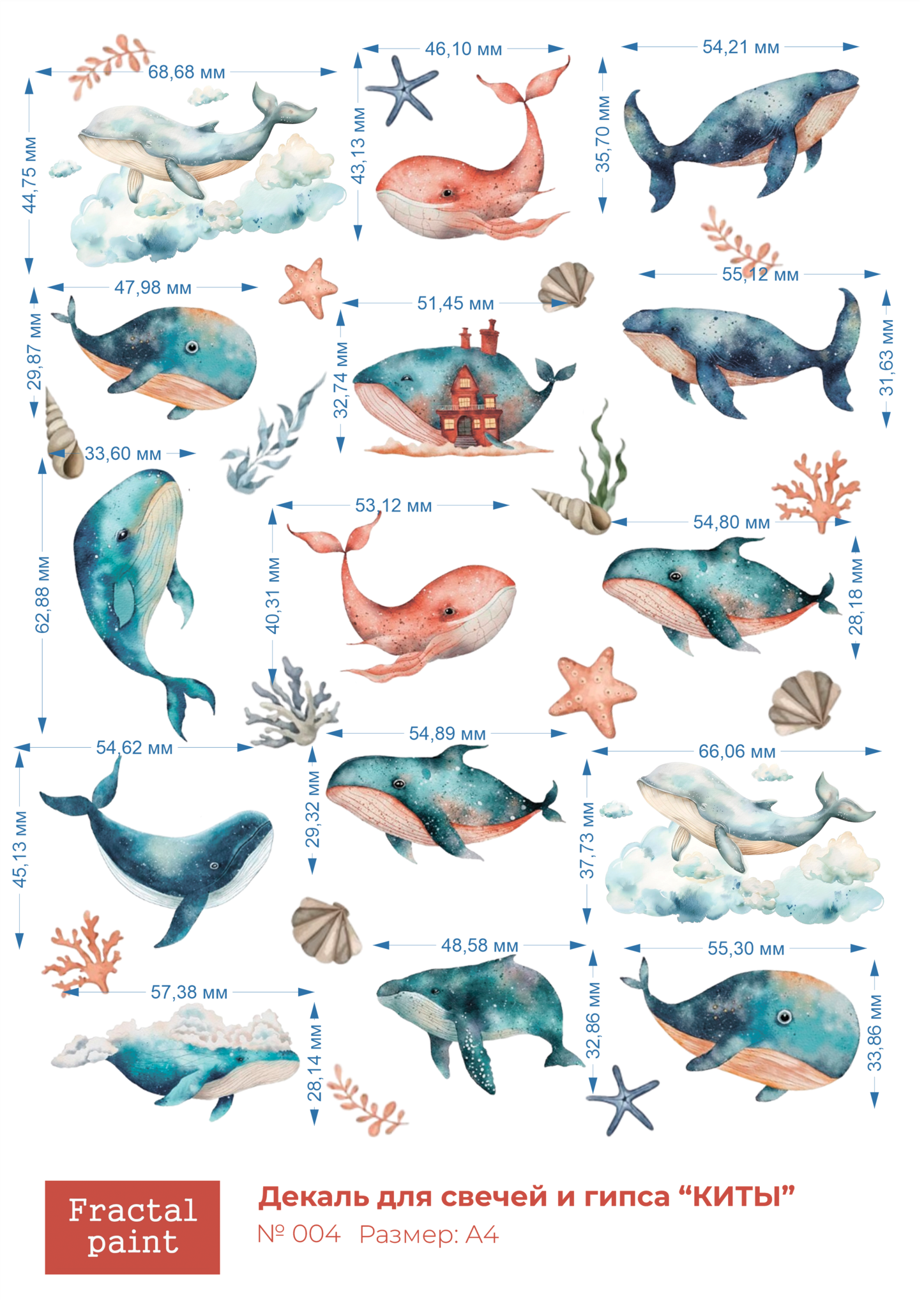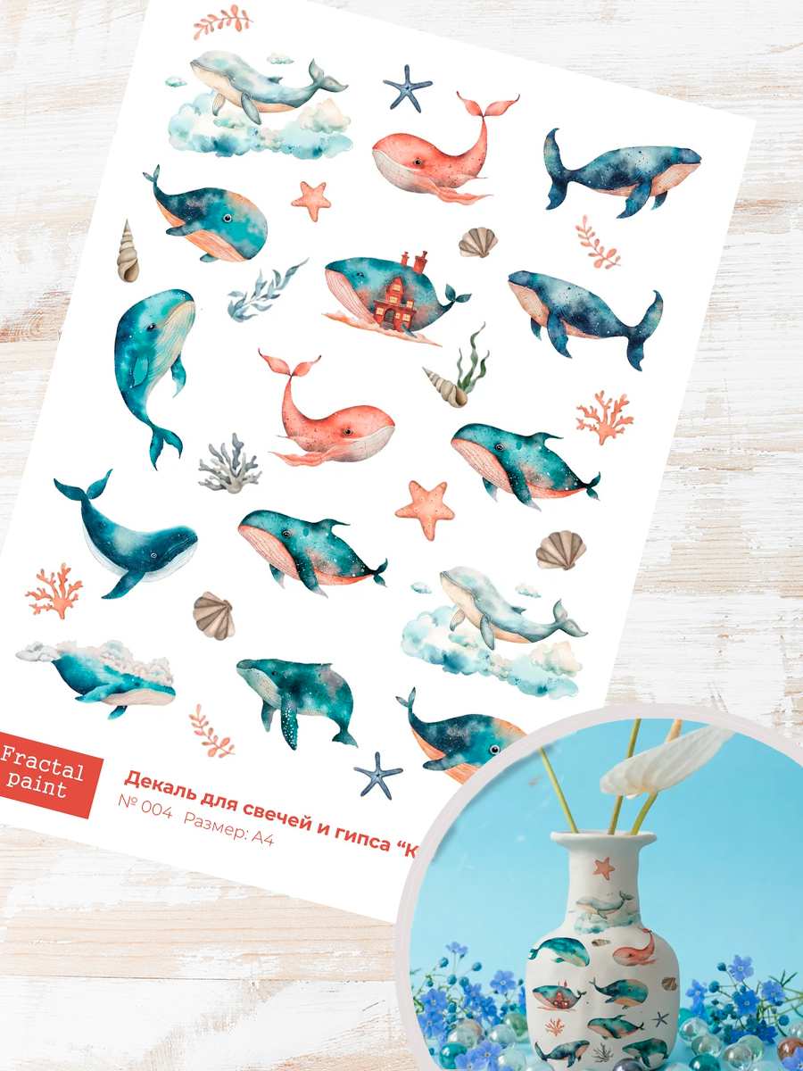 Трансфер переводной - декаль для свечей и гипса киты 004
