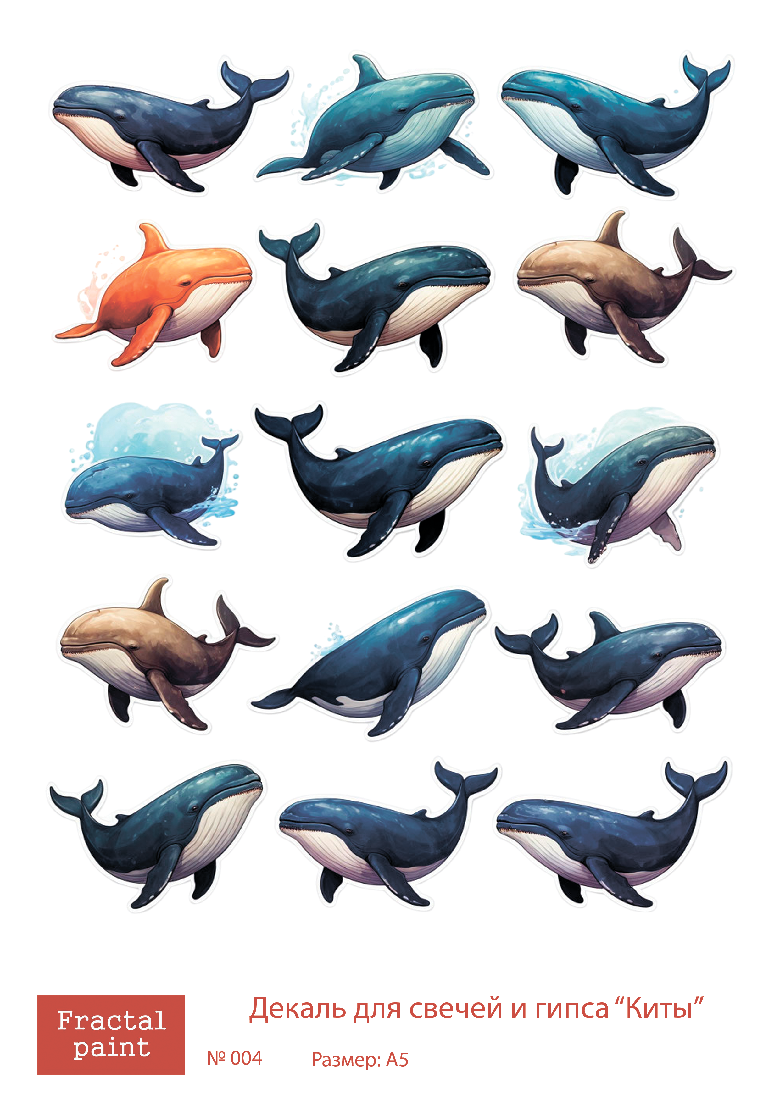 Трансфер переводной - декаль для свечей и гипса киты 004 А5