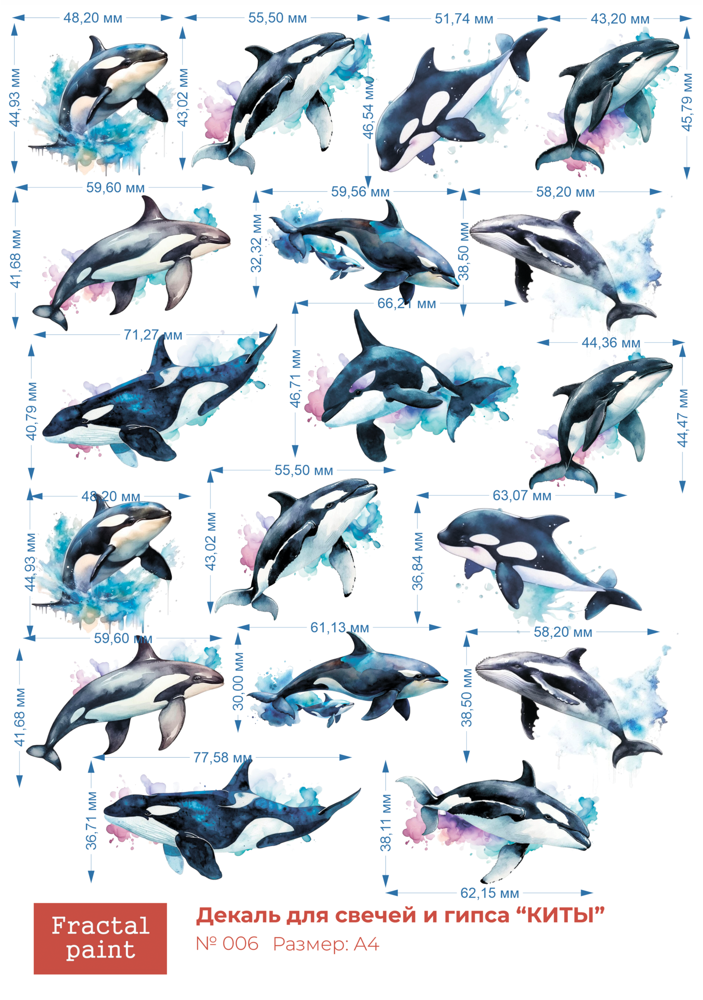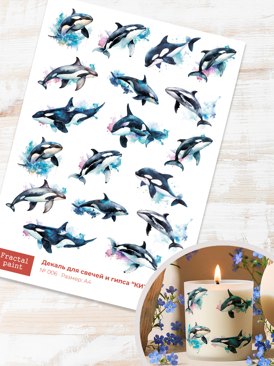 Трансфер переводной - декаль для свечей и гипса киты 006